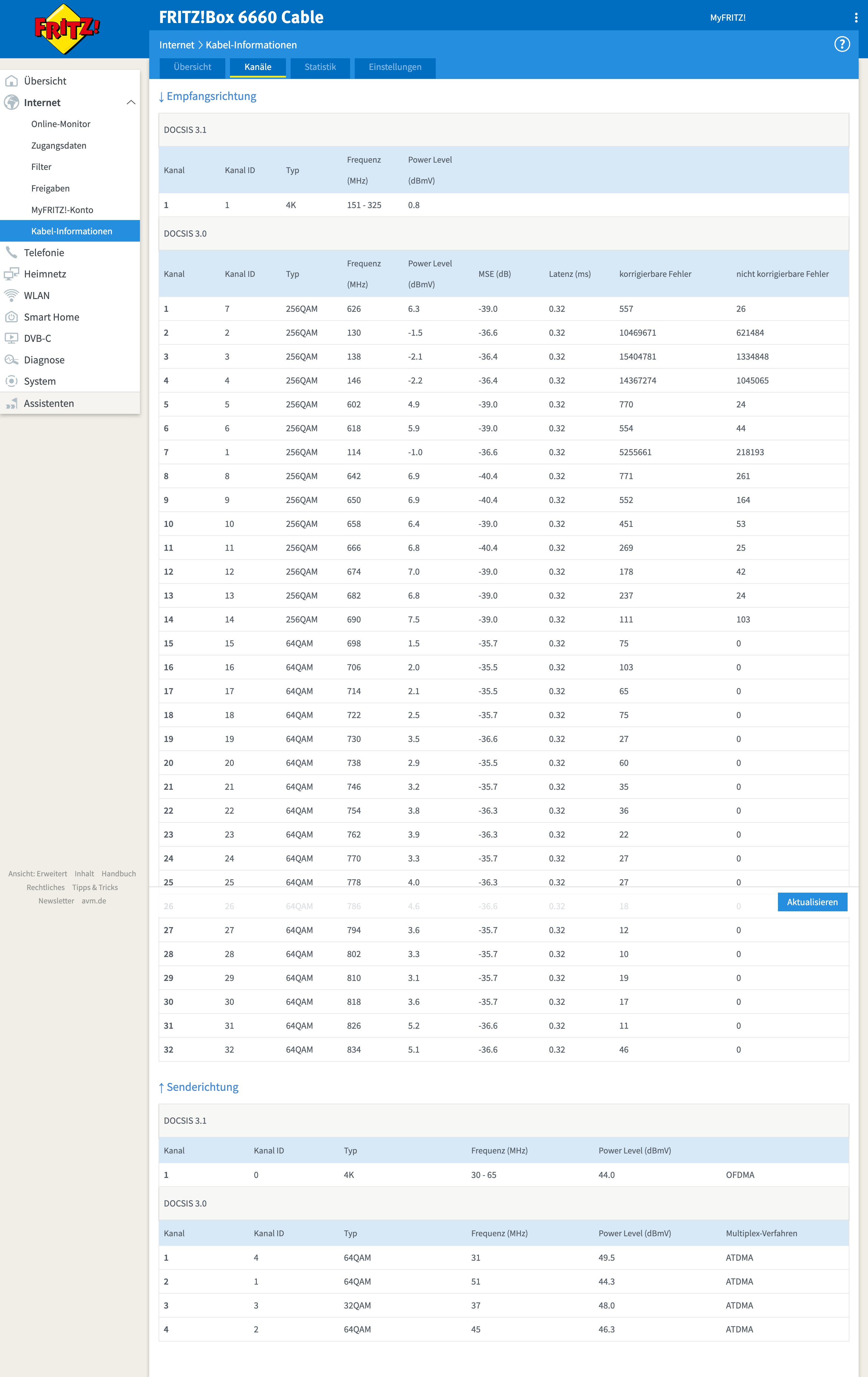 Ich habe einmal die Kabel-Informationen von meiner Fritzbox! 6690 und einmal die Werte von meiner Multimediadose hinzugefügt !!! Also wenn man sich die Kabel-Informationen anschaut, liegt hier ein Rückwegstörer vor ?