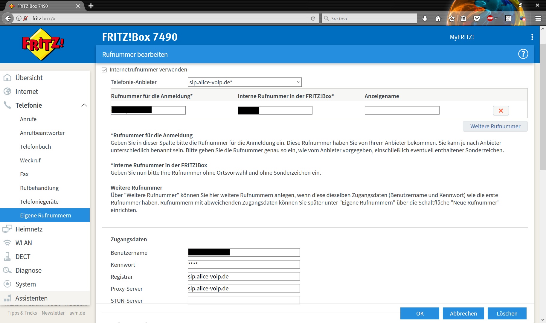 wir haben hier seit gestern einen VoIP Anschluss von O2 mit Option ISDN Komfort (vier Rufnummern). Als Router kommt eine Fritzbox 7490 zum Einsatz. Des Weiteren wird ein kabelgebundenes und vier DECT Telefone verwendet. Das einzige Problem welches noch besteht, ist dass die Rufnummer bei angerufenen Personen nicht angezeigt wird. Egal welches Telefon und welche Rufnummer.