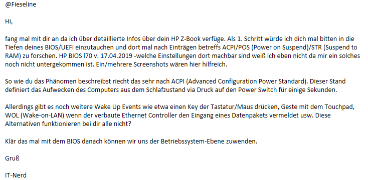 'jede Menge Müll, ein tieferes Eintauchen ist aufgrund der genullten letzten Einträge hier ein Ende gesetzt. Zusätzlicher Blödsinn: +0x218 DevicePowerState : 0x152af1a0 (No matching name) -hier könnte bestenfalls D0, D1, D2 oder D3 stehen. Tippe mal, das Device hat null Plan vom Power State.