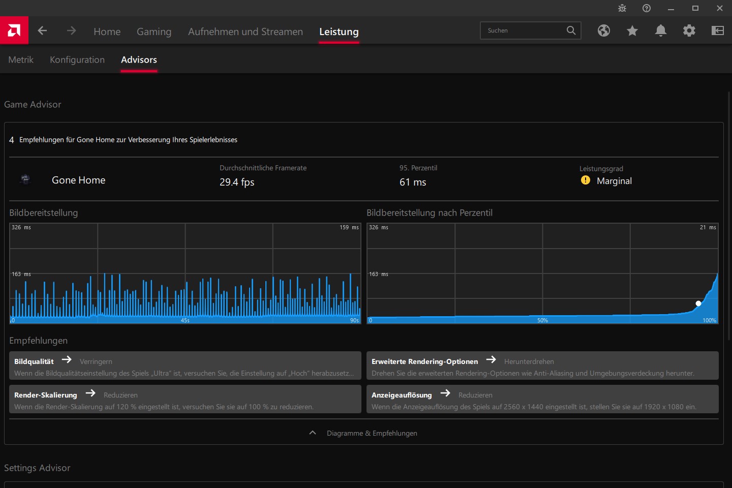 Keine/kaum Ausschläge, läuft butterweich. Beides sind echt nicht die neuesten Spiele, aber gerade Gone Home ist jetzt nicht der grafische Brüller, der eine RX 480 in die Knie zwingen sollte. Vor allem wo die FPS über die Zeit eigentlich noch stabil sind.