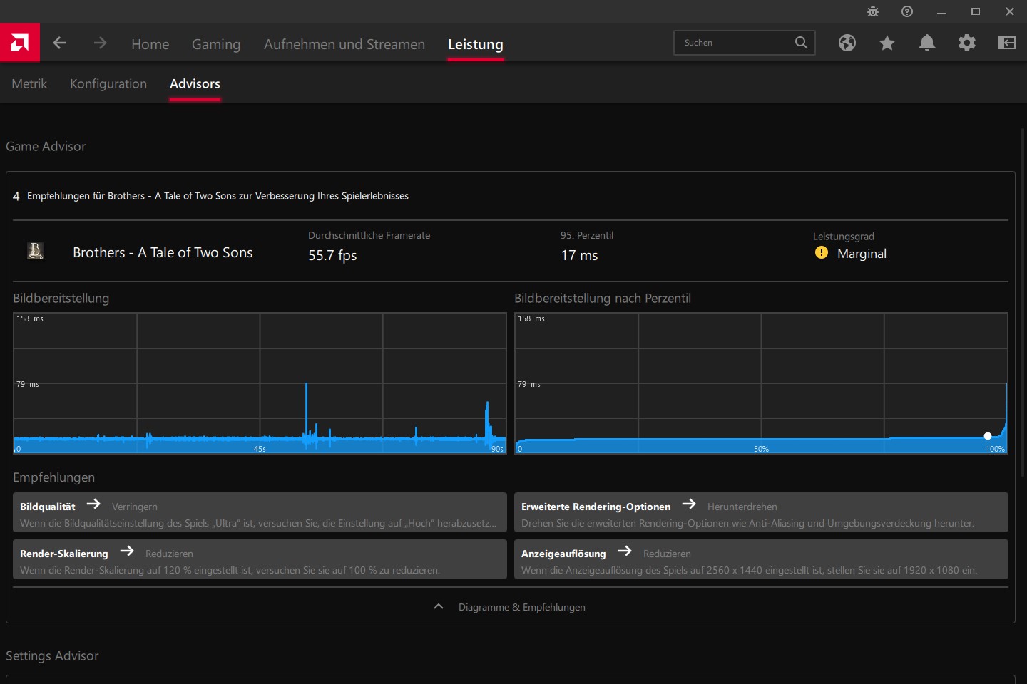 Ich vermute mal stark, dass die Ausschläge die Momente sind, wo ich nicht genug Bilder bekomme und das Spiel stockt. Ich habe zum Vergleich mal Brothers - A Tale of two Sons gespielt, wo ich die Probleme nicht habe.