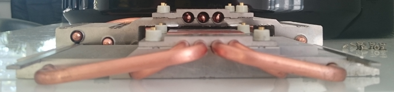 Der Kühlkörper der 7870 ist relativ klein (190g), kleiner als die Abbildungen der Karte suggerieren, er hat 4 kleine(re) Heatpipes und 2 Lüfter.