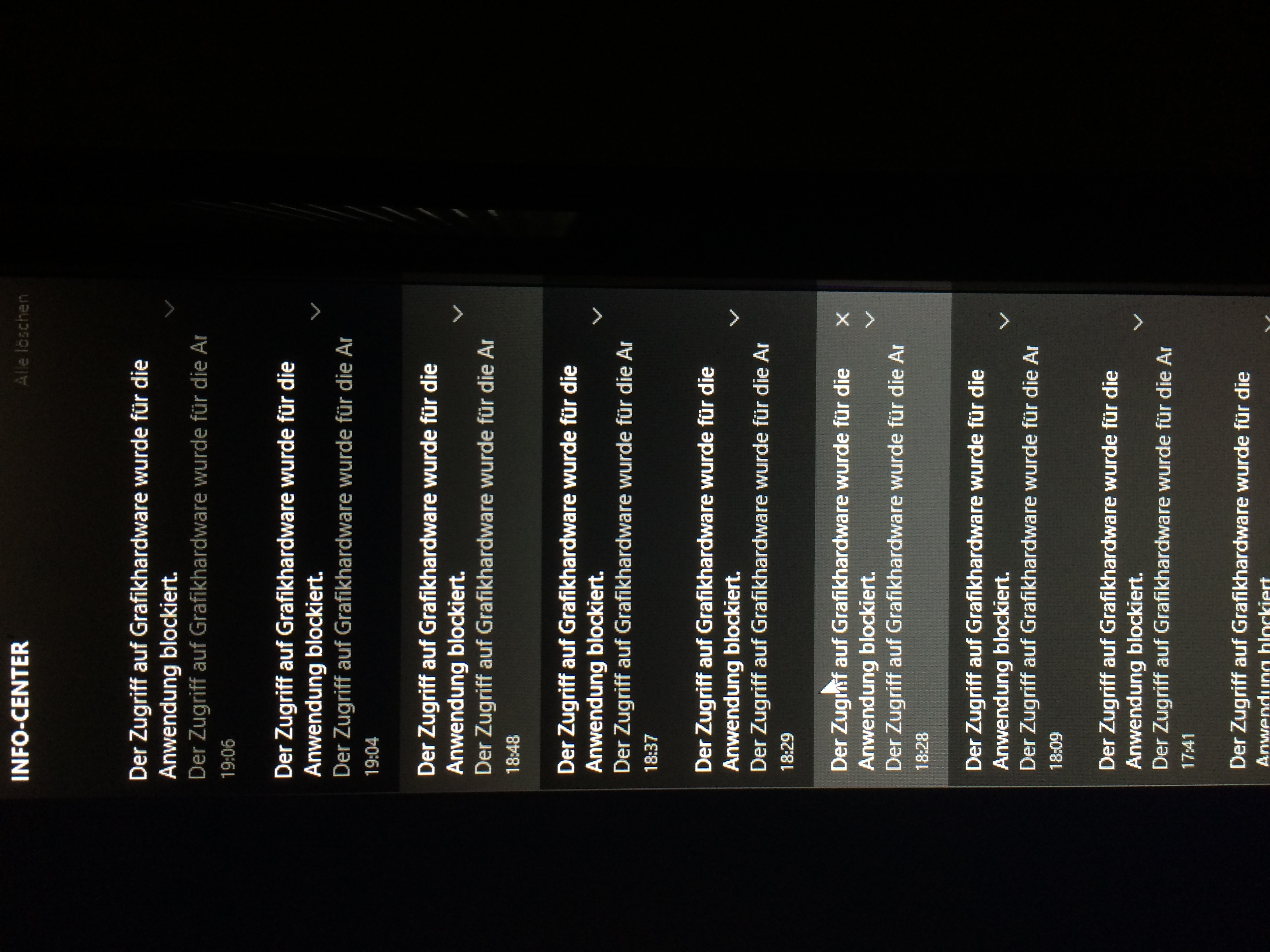 Vor der Meldung taucht immer ein Blackscreen auf der unter Desktopbetrieb automatisch nach ein paar Sekunden wieder verschwindet. Bei Spielen oder Videos muss allerdings die Seite (Video) neugeladen, bzw. das Spiel im Taskmanager geschlossen und neugestartet werden.