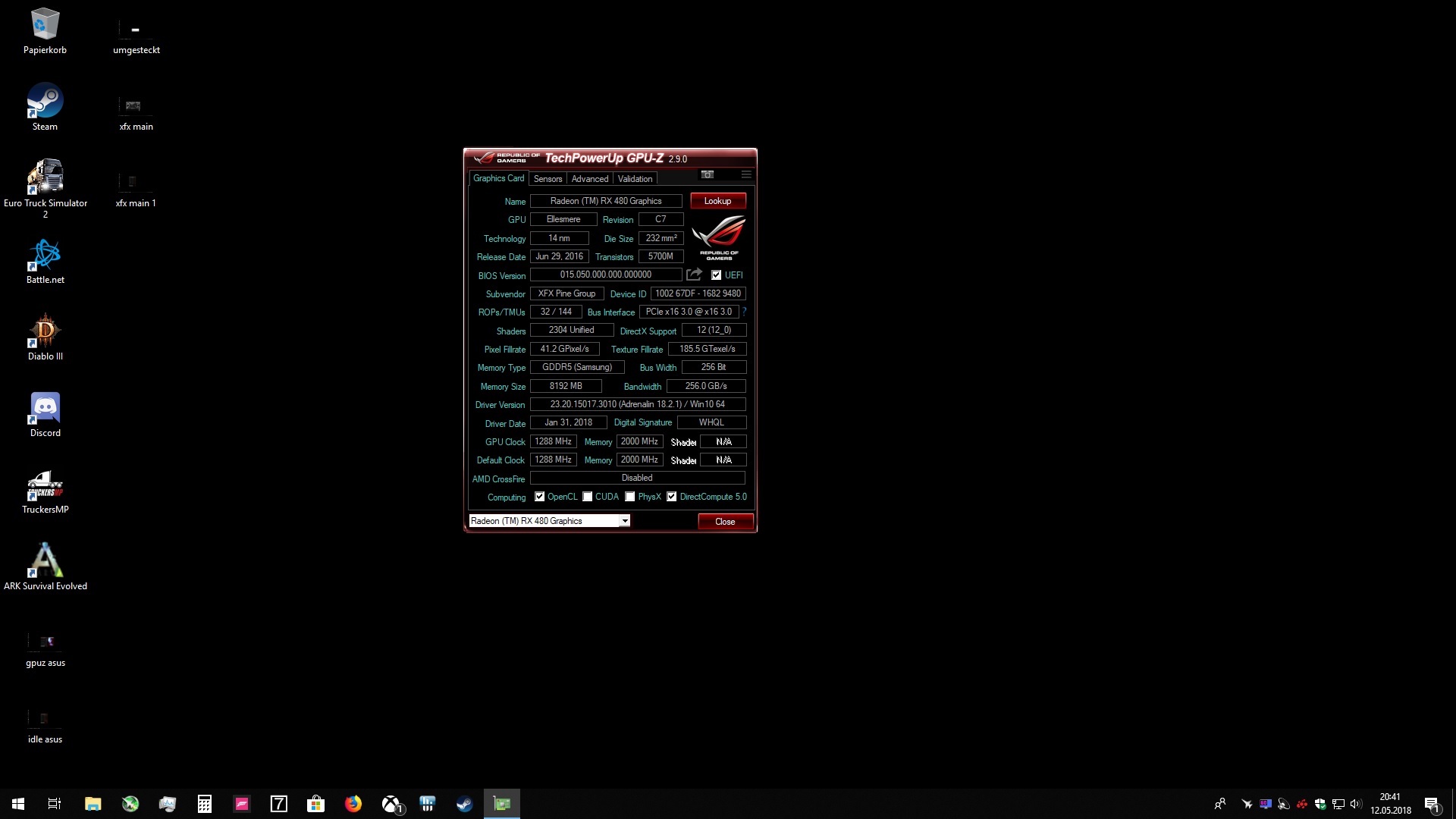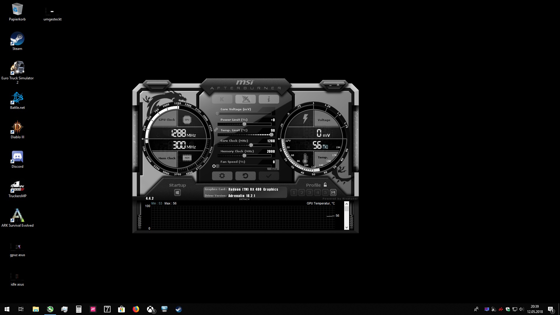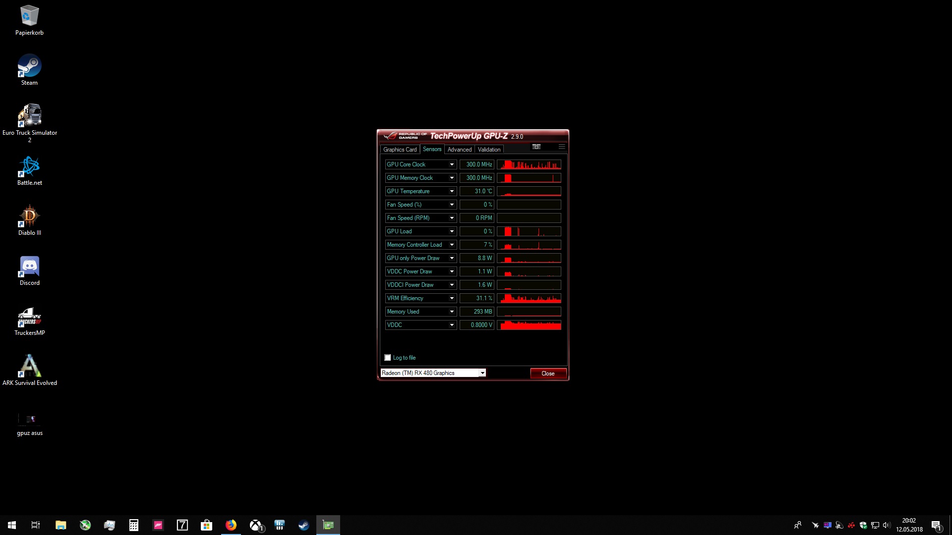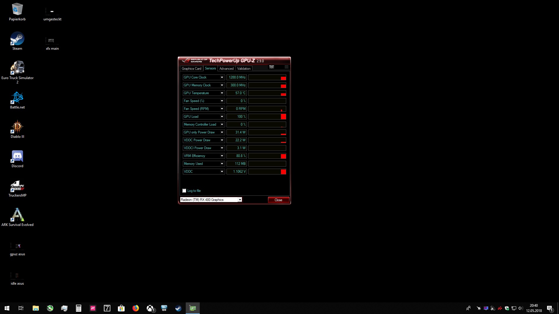 folgendes Problem, Die XFX RX 480 8GBGrafikkarte boostet im Idle mit 1288MHz