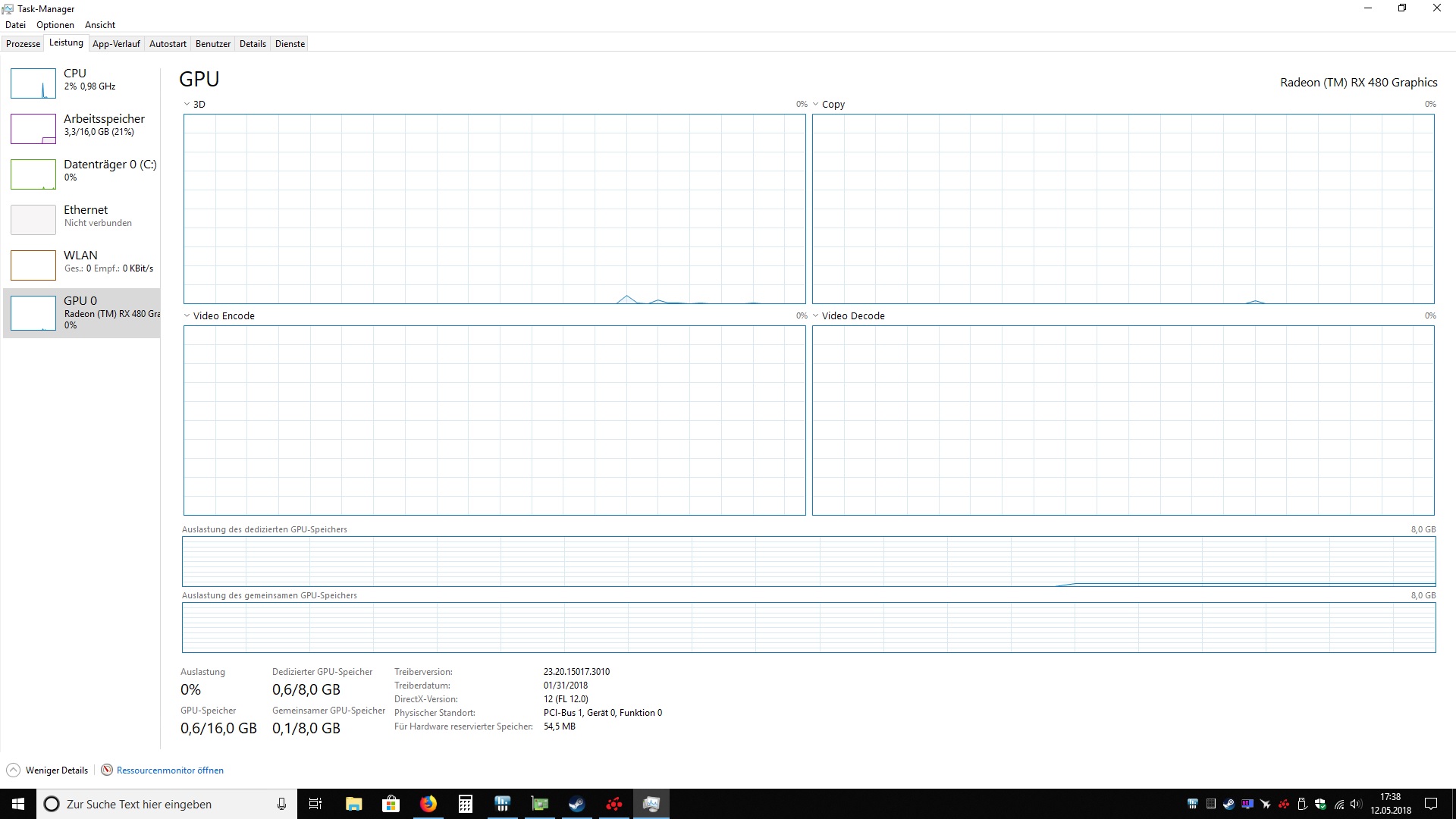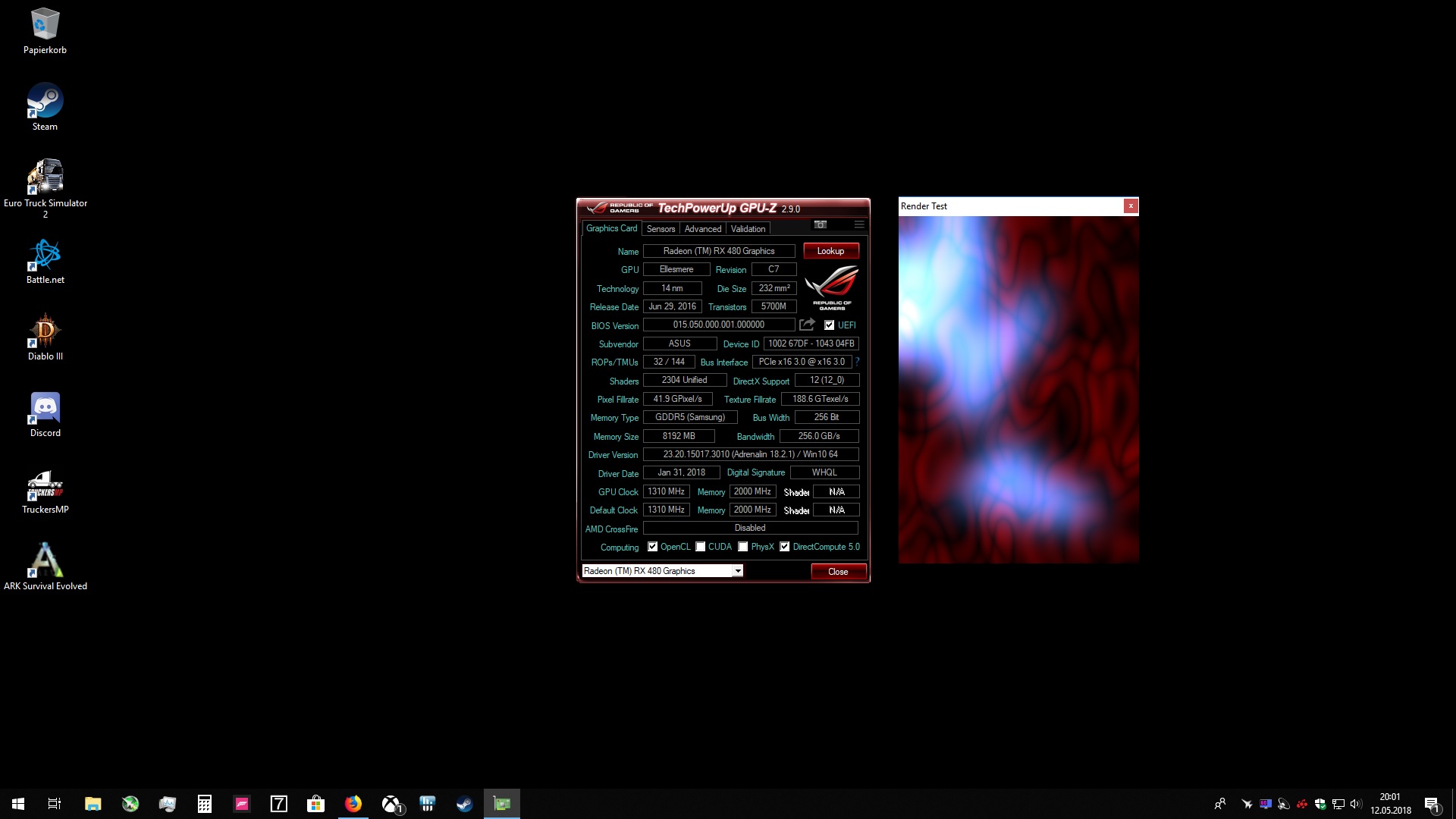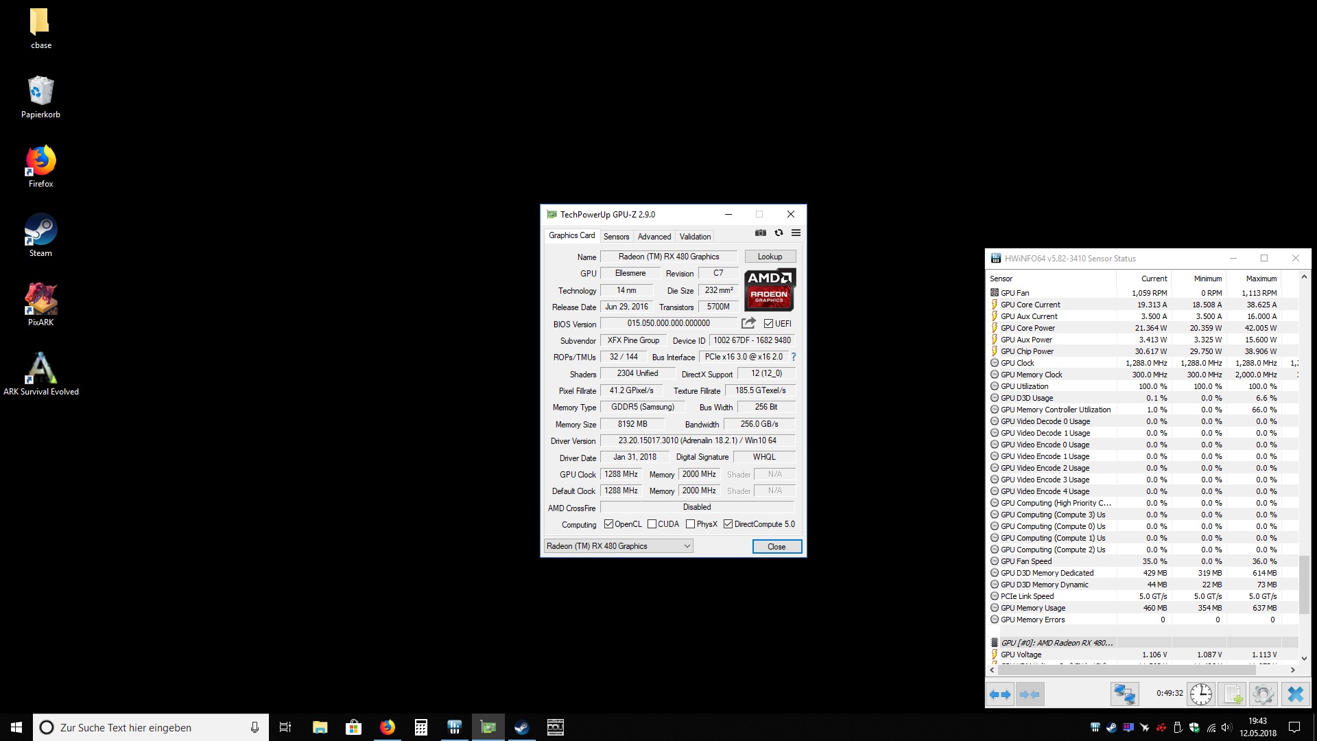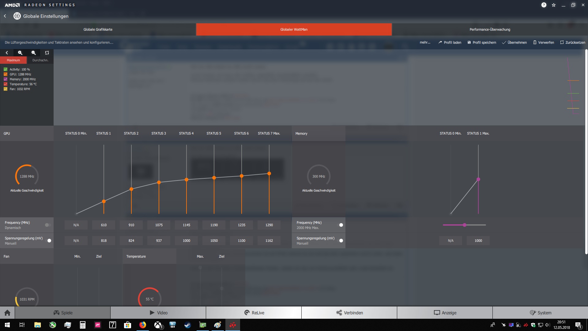 folgendes Problem, Die XFX RX 480 8GBGrafikkarte boostet im Idle mit 1288MHz