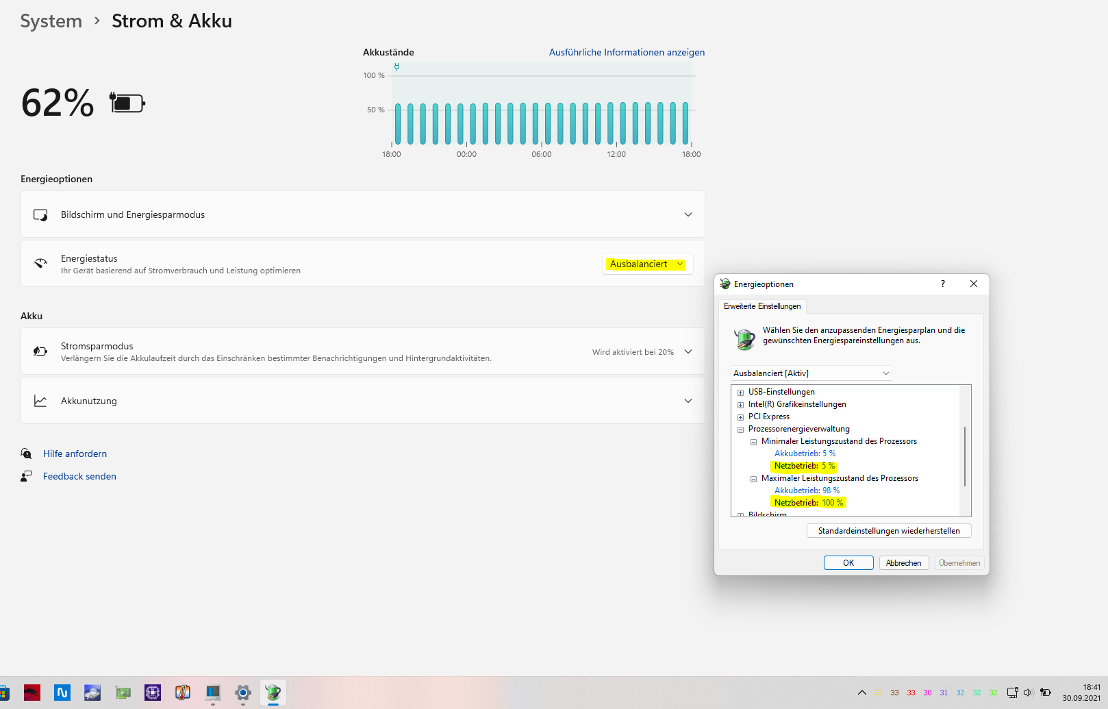 Mein System MSI B450 TOMAHAWK MAX II, neuestes Bios, 16 GB 3200 Ram, Grakatreiber AMD 21.9.1 Chipsatztreiber 3.09.01.140. CPU Tacktet unter Windows 10 Im Energiepsparmodus mit 1,74 GHZ, unter Windows 11 will die CPU nicht unter 3,6 GHZ Im selben Modus. Cleaninstall auf einer Extra Partition. Ideen, woran das liegen könnte?