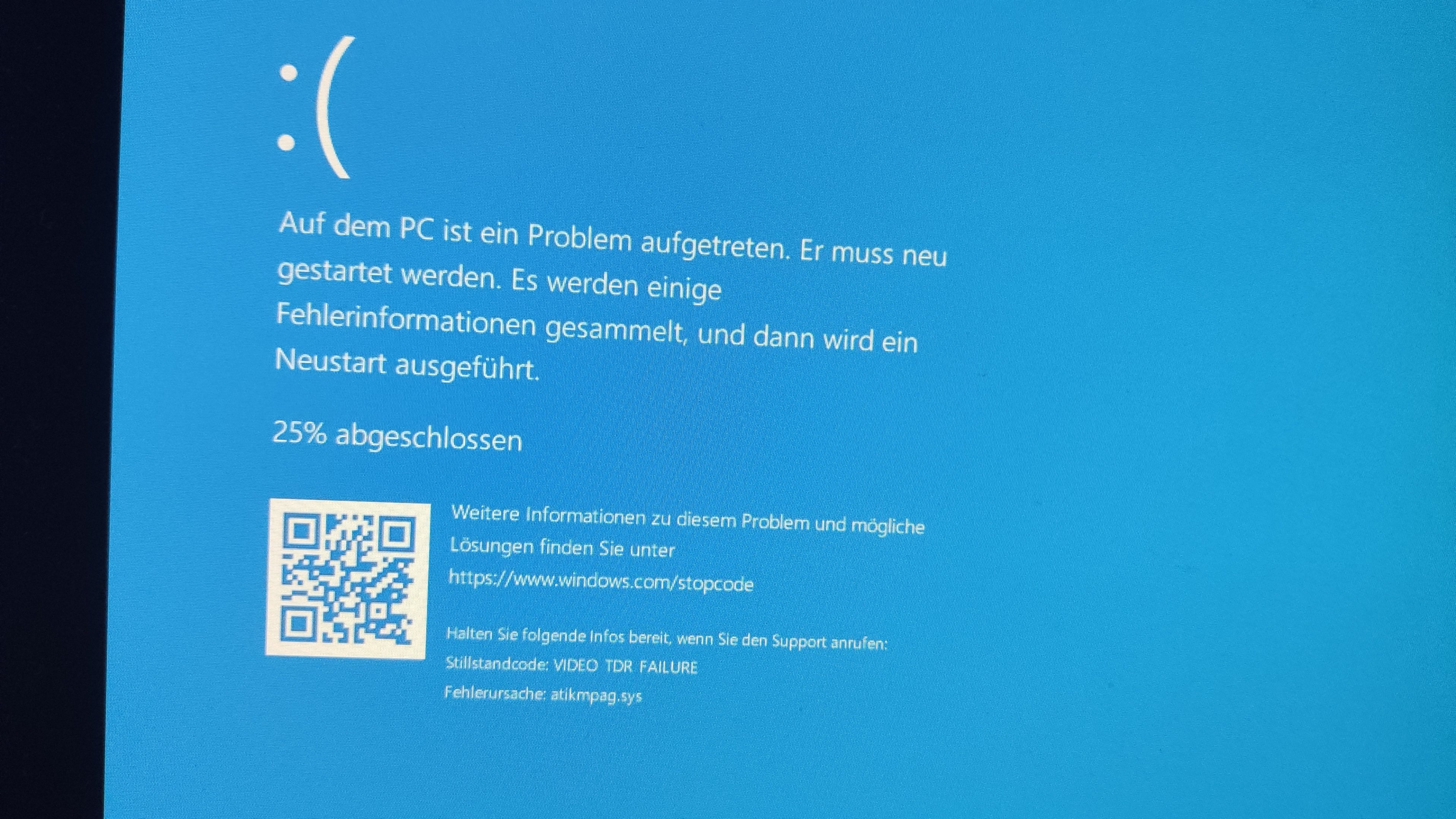 Oft kommt es nach der Eingabe von meinem Pin zu dem Anzeigefehler mit der Rasterbildung, wie es auf den Bildern zu sehen ist. Manchmal auch zu anderen Zeitpunkten kurz davor oder kurz danach. Beim "Kaltstart" trifft es recht selten auf, bei einem Neustart fast immer. Nach einem Reboot geht es meist wieder, manchmal erfolgt auch 2-3x ein Reboot und dann kommt ein Bluescreen. Beim Bluescreen steht dann: Stillstandcode VIDEO TDR FAILURE, Fehlerursache atikmpag.sys.