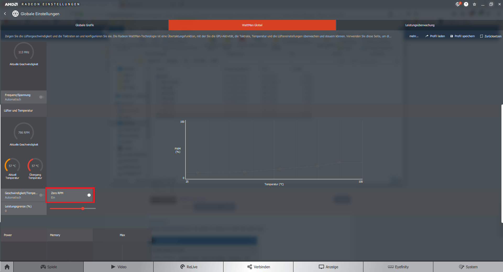 Bei meiner 5700XT Red Devil funktioniert der Zero Fan Mode im Idle nicht mehr, sobald ich im Treiber den Schalter für Frequenz / Spannung von Auto auf Manuell stelle (egal ob ich überhaupt Werte verändere). Erst ein zurücksetzen des Profils + Neustart korrigiert das wieder. Verhält sich das bei anderen 5700XT Karten ebenso?