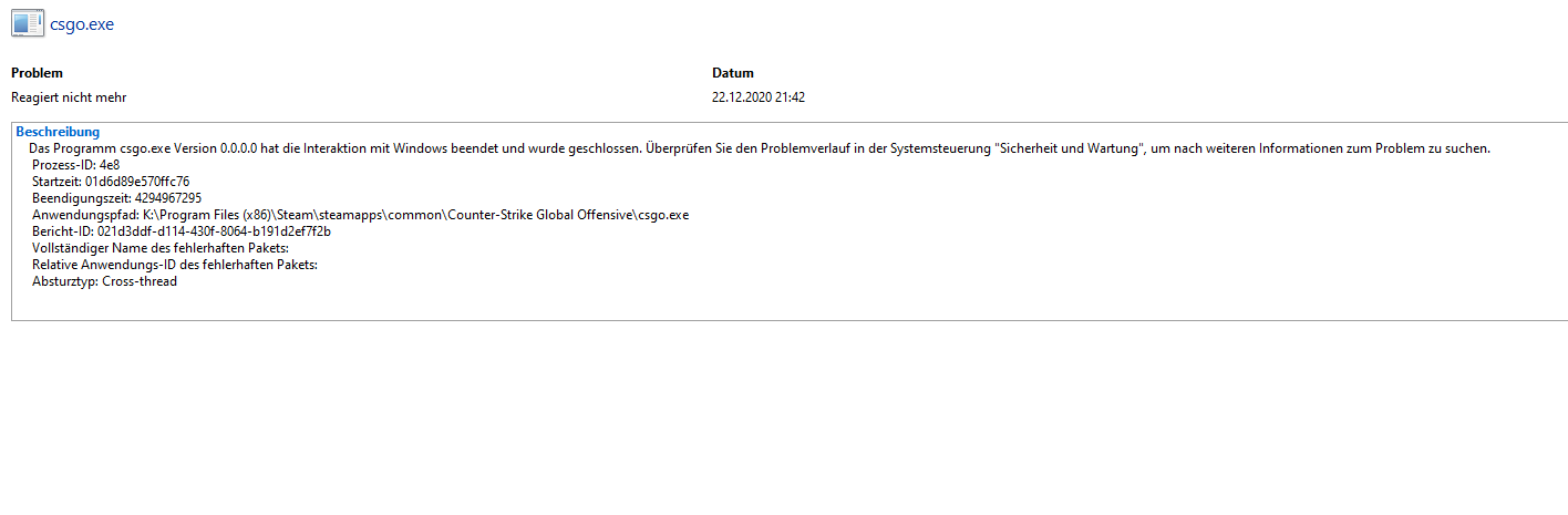 Danach sind die abstürze 2x mal in CS:GO vorgekommen und einmal als ich ein Video auf YouTube geschaut habe.