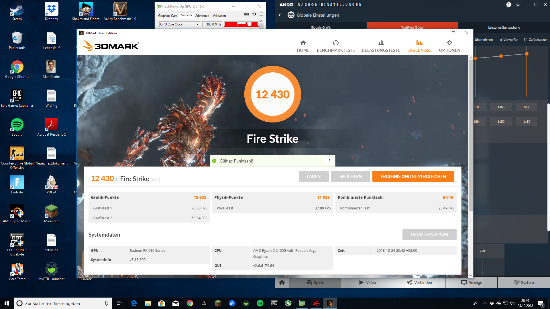 Firestrike im Fenstermodus , wenn es loslegt GPU-Z resetten und die AVG-Werte beobachten.