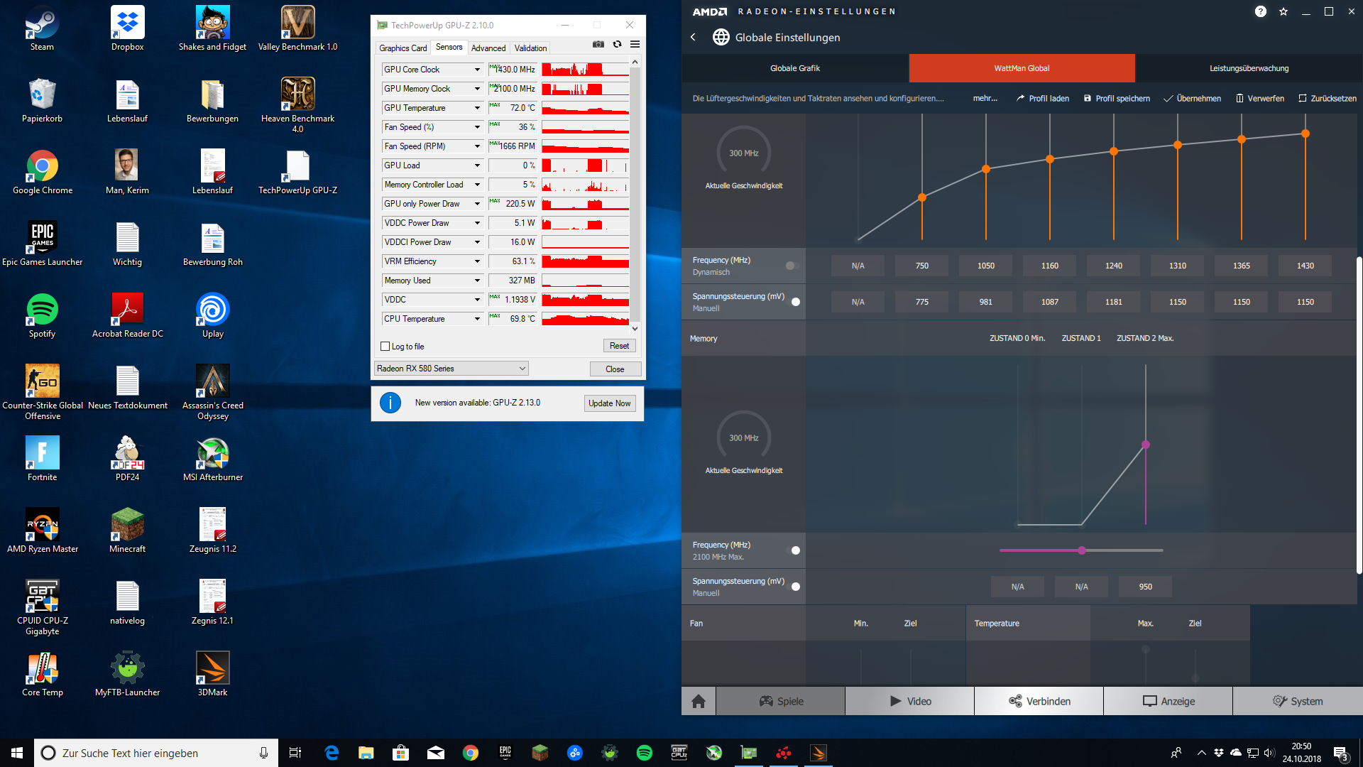 Ich habe eine RX 580 Red Devil 8GB und würde sie gerne etwas "feintunen". Dabei ist es mir besonders wichtig, dass sie so leise wie möglich ist. Sollte dies etwas Leistung kosten wäre das kein Problem, da ich meistens nur DotA 2 spiele und die Grafikkarte dafür locker ausreicht.