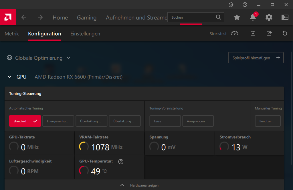 - Grafikkarte: AMD Radeon RX 6600