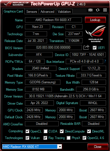 - Grafikkarte: xfx rx 6600xt