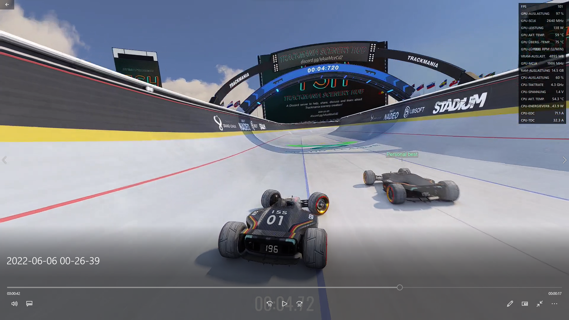 Auslastung VRAM GPU im Beispiel Trackmania: 4200MB