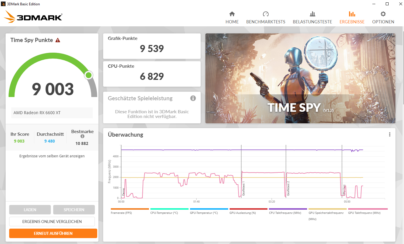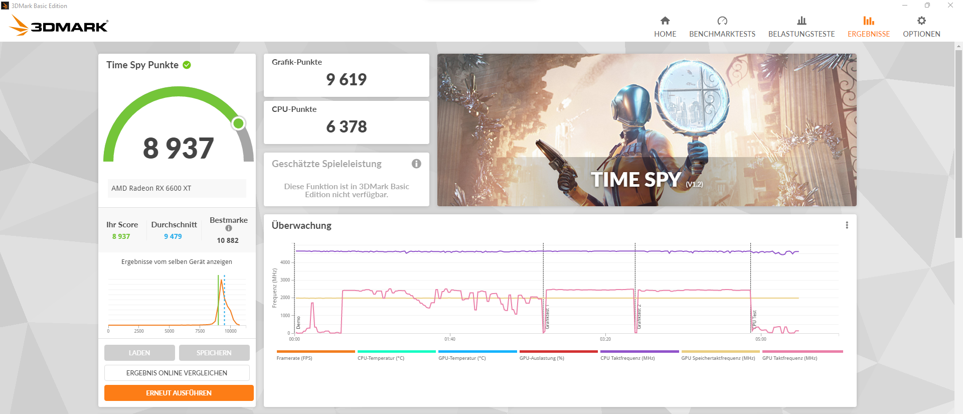 3.) 3DMark Time Spy Benchmark durchfürhren Ergebnis Posten
