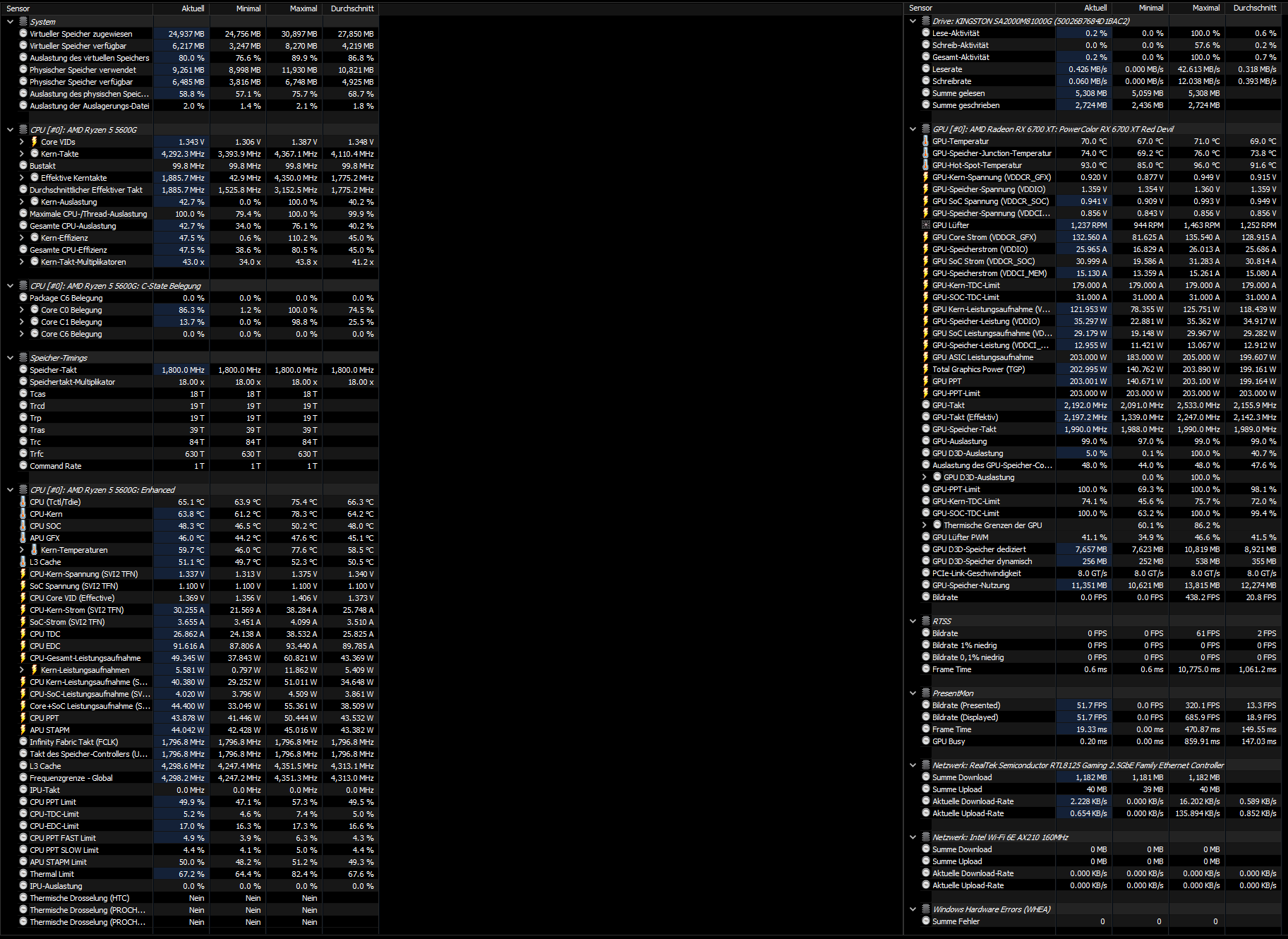 Ich habe auf Empfehlung anderer auch nochmal den Benchmark, mit HWInfo im Hintergrund laufen lassen. (Vgl. Bild: HWInfo)