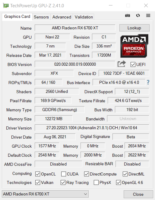 Bios: Radeon™ RX 6700 XT EAGLE 12G: Bios