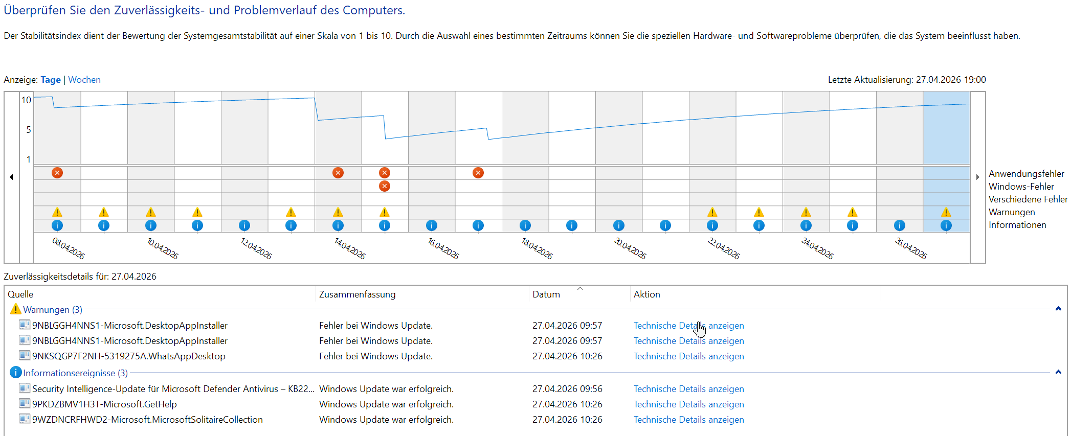 Das ist mir klar. Im Zuverlässigkeitsverlauf steht nichts außer unerwartet. Kann natürlich auch sein, das ich komplett die falsche Komponente unter Verdacht stelle. Was mich aber wundert ist, kann aber natürlich auch einfach Windows sein: Um 17:11 war der Reboot und erst um 17:22 steht ja EventLog. .dmp dateien hat windows aber erstellt glaube ich: