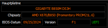 - Mainboard: Gigabyte B850M DS3H
