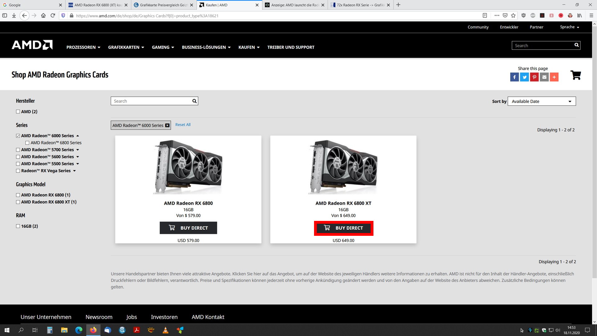 Also ich bin jedenfalls ueberhaupt nicht entruestet vom RDNA2 Marktstart, aber ich habe auch nicht versucht eine dieser Karten jetzt zu ergattern und nur zum Marktstart mitbekommen, wie einige wie die Verrueckten ausgeflippt sind (waehrend des Youtube Livestreams von Igor zum Launch), weil sie noch keine Grafikkarte zum Wunschpreis ergattern konnten.