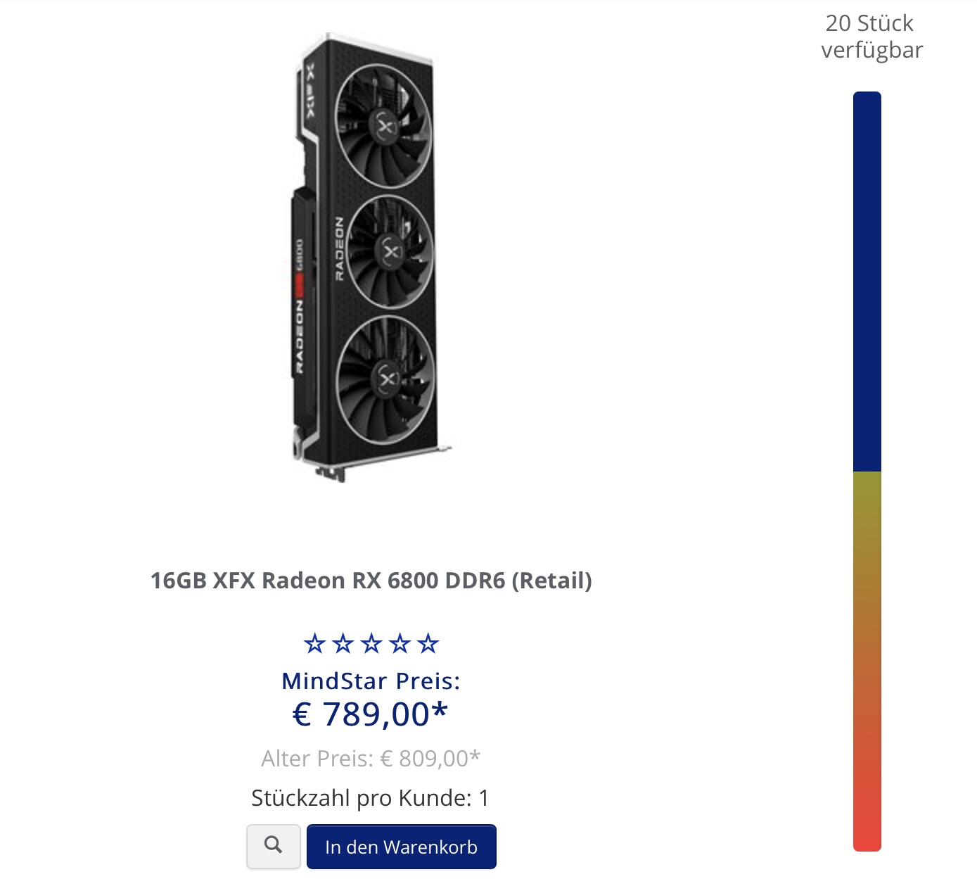 also bei mindfactory sind zwei 6800 schon seit gestern auf Lager, und immer noch nicht ausverkauft.