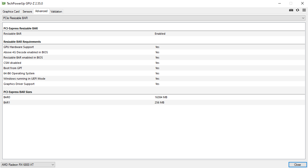SAM ist resize bar oder ? Ja ist aktiviert