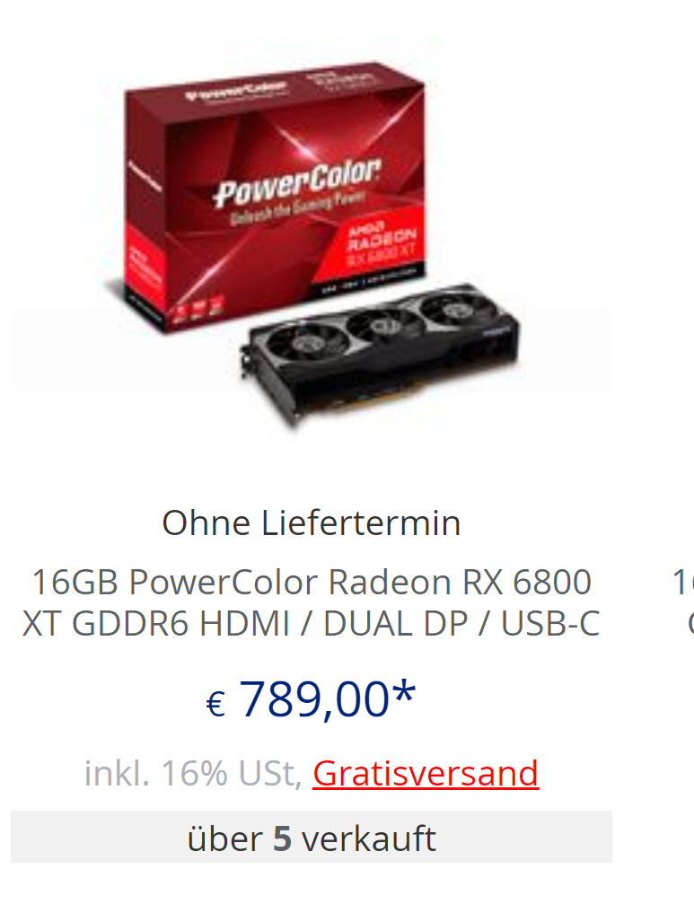 Jo und nichtmal eine 6800 XT. So ein Dreck. Hab glaube eine bei Mindfactory bekommen, aber der Kauf macht echt keinen Spaß bei so einem Aufpreis. Mal sehen, was ich morgen für ein Gefühl dabei habe. Einfach nur frech.