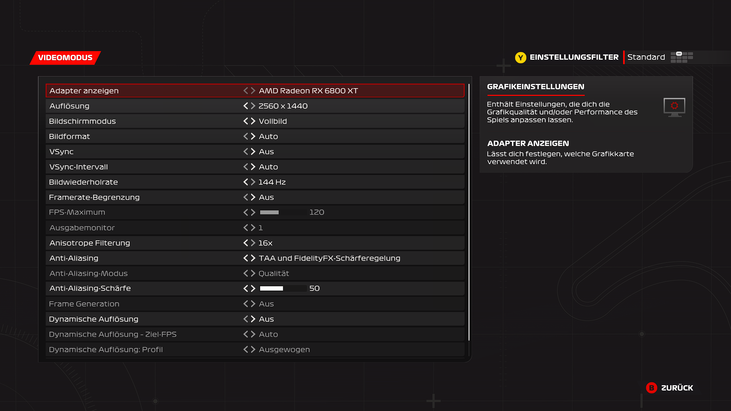 Ich spiele alles auf Ultra, nur Raytracing habe ich aus, da es mit AMD keinen Sinn ergibt und super schlecht aussieht. Im AMD Treiber ist alles auf aus, nur Schärfen (70) und Oberflächenoptimierung ist an. Das Tearing befindet sich immer vor mir auf der Strecke, genau in der Mitte des Bildschirms quasi. Alle andern Bereiche sind Tearing frei. Zumindest habe ich es noch an keiner anderen Stelle entdeckt.