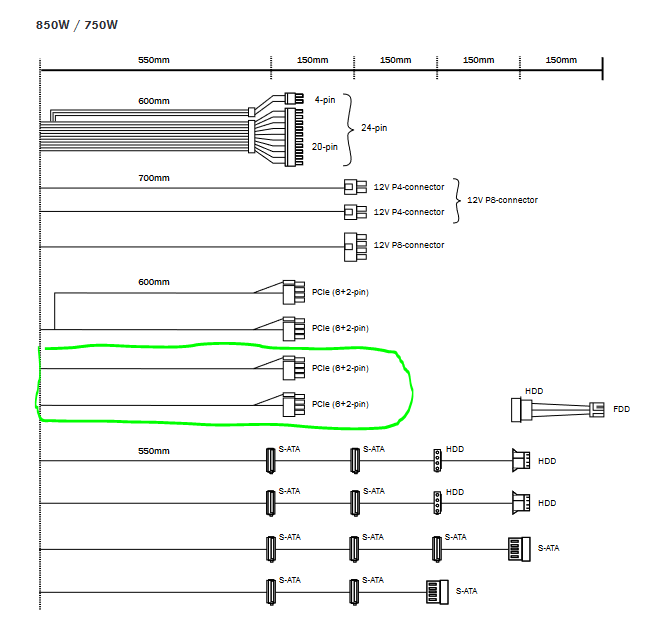 Ich würde aber 2 separate Kabel nehmen bei einer RX 6900 XT - an PCIe1 und PCie3.