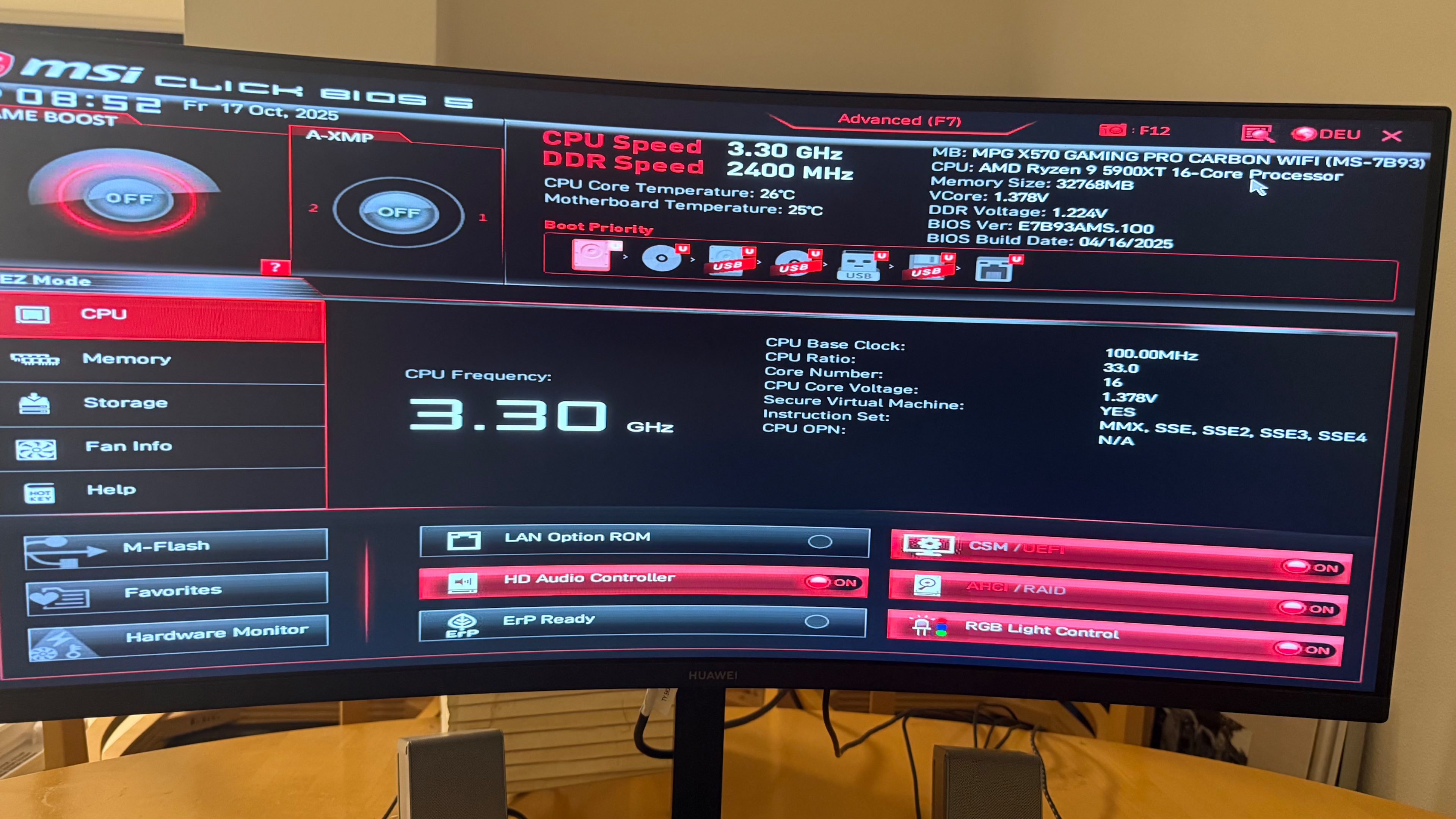 • Mainboard: MPEG X570 Gaming Pro Carbon
