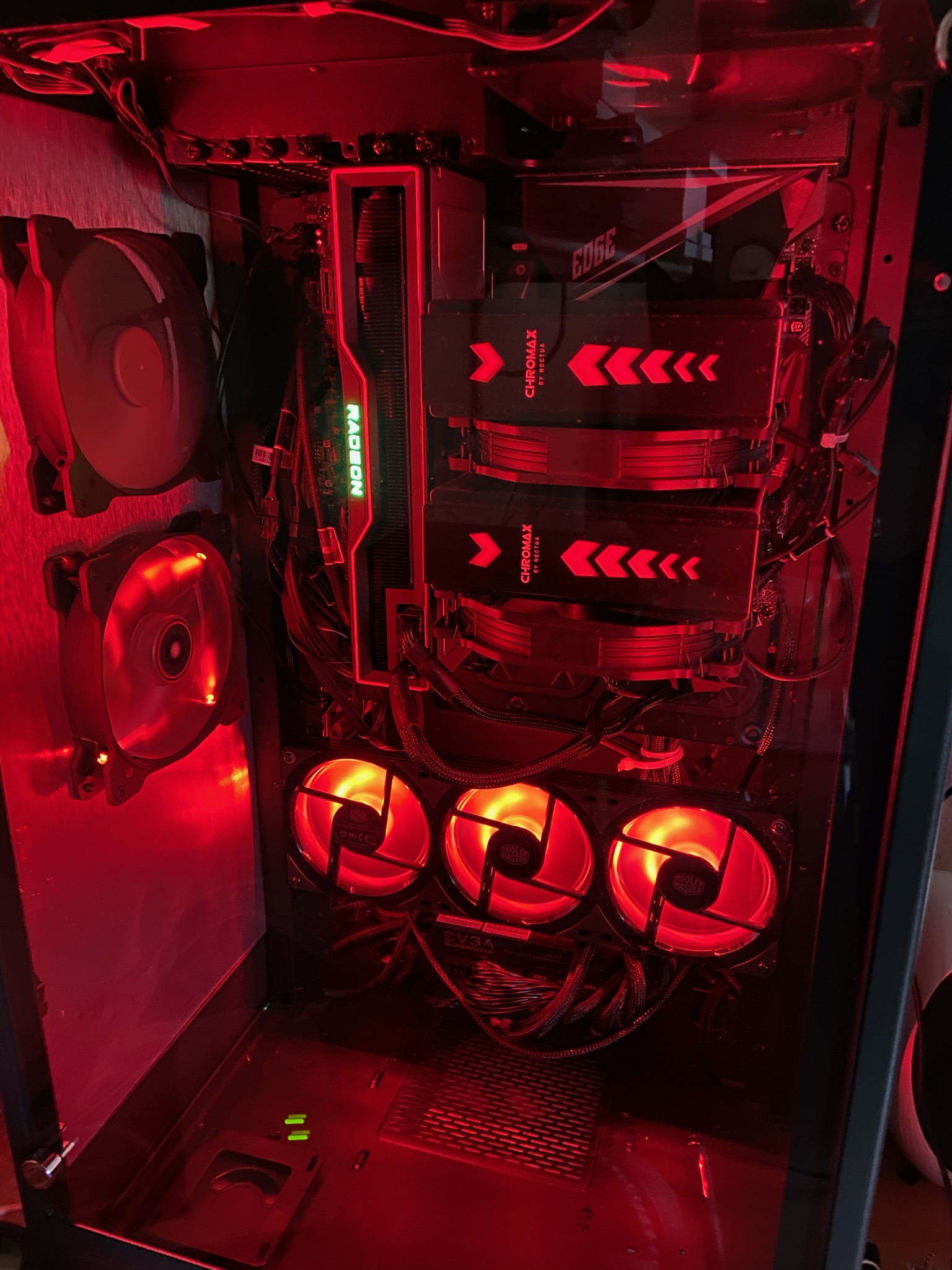 - Weitere Hardware, die offensichtlich mit dem Problem zu tun hat(Monitormodell, Kühlung usw.): Standard Kühler von Amd auf dem Prozessor, Amd referenzmodell der graka und 2 mal 140 mm Lüfter in der Front und 2 mal 120 mm Lüfter hinten