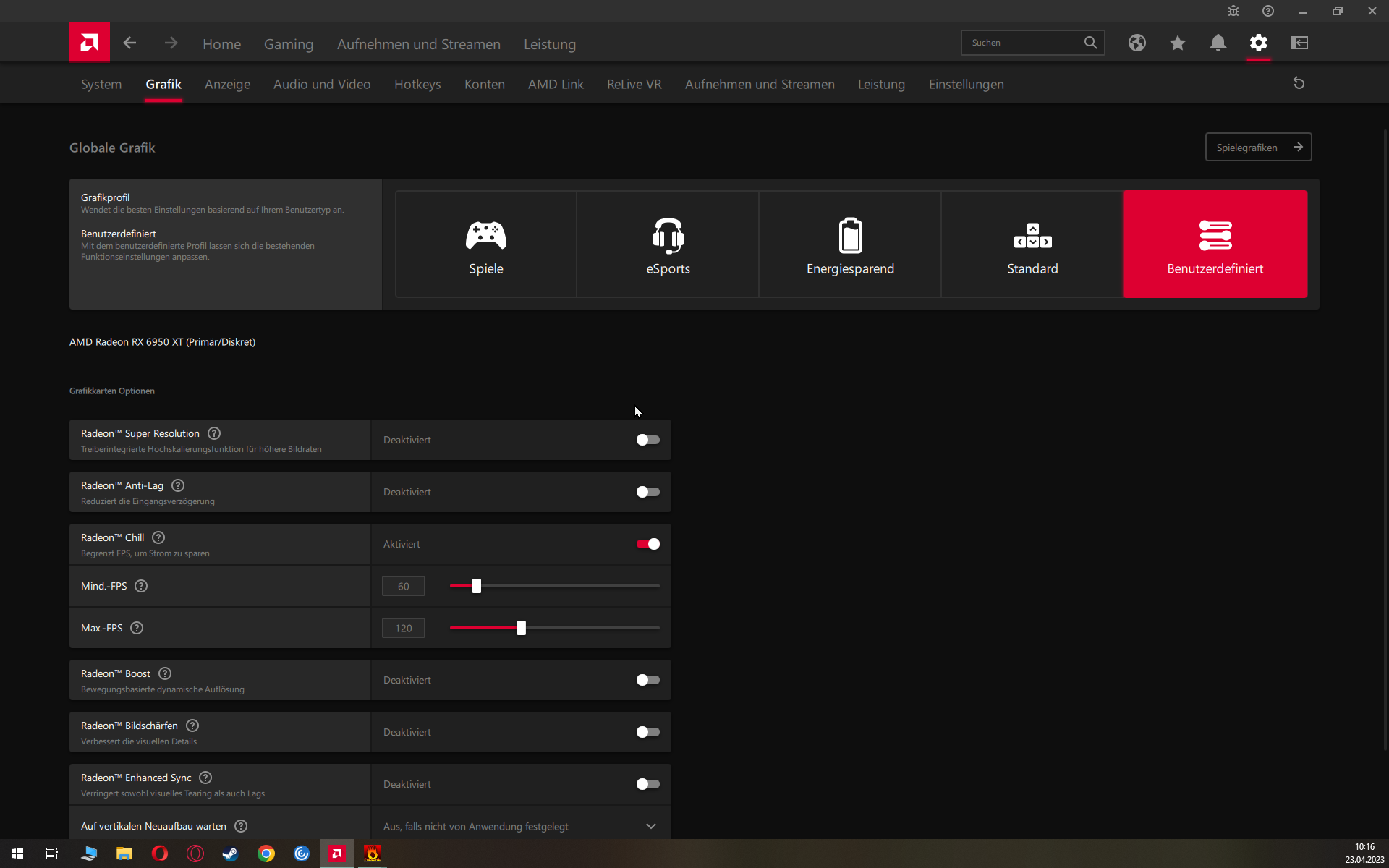 Radeon Chill on, min FPS 60 max FPS 120