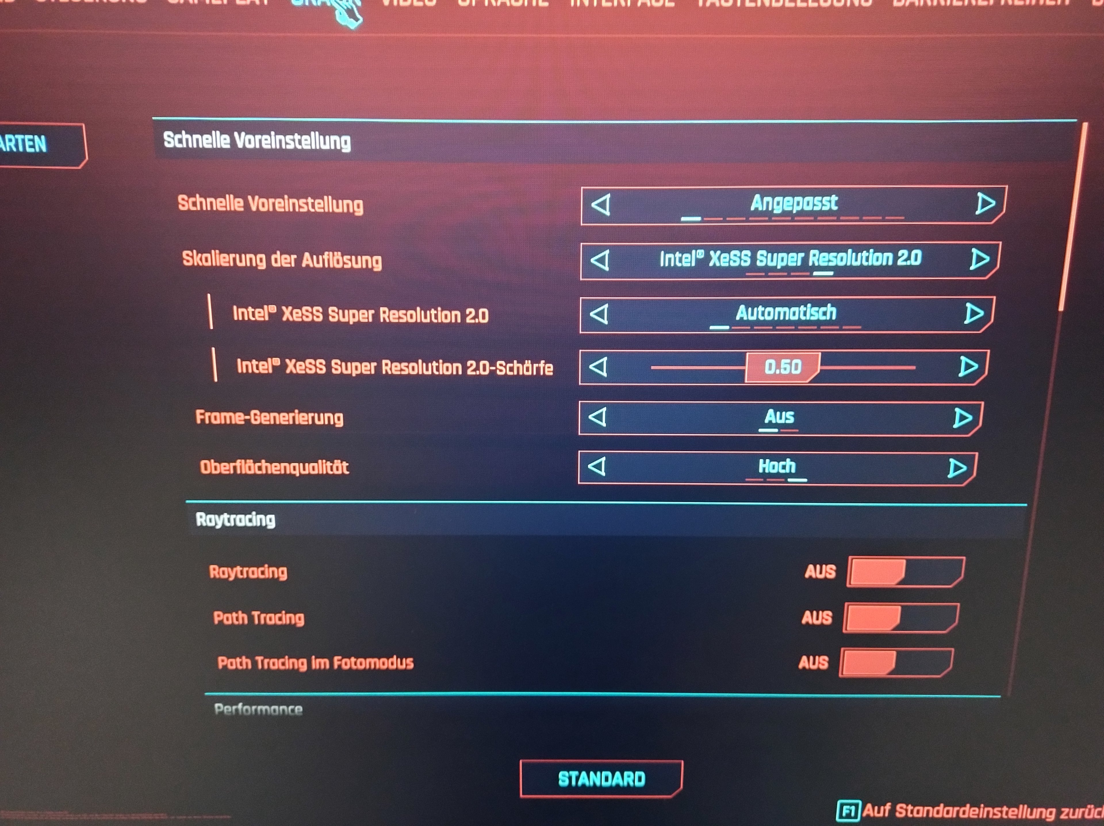 Ich habe vor kurzem angefangen Cyberpunk 2077 Phantom Liberty zu spielen und habe diverse Unstimmigkeiten bei der Grafik. Bei Zebrastreifen und internen Bildschirmen, sowie beim Hacken habe ich ein merkwürdiges Flimmern. Verstärkt wird dieses Phänomen bei Bewegungen mit der Maus. Mit meiner RX 6600 und Cyperpunk 2077 ohne Phantom Liberty hatte ich diese Probleme nie.