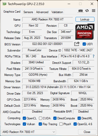- Grafikkarte: Power Color RX7800XT