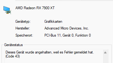 seid ihr aus meinem Urlaub zurück bin startet meine GK nicht mehr. Im Gerätemanager bekomme ich die Fehlermeldung." Dieses Gerät wurde angehalten, weil es Fehler gemeldet hat."