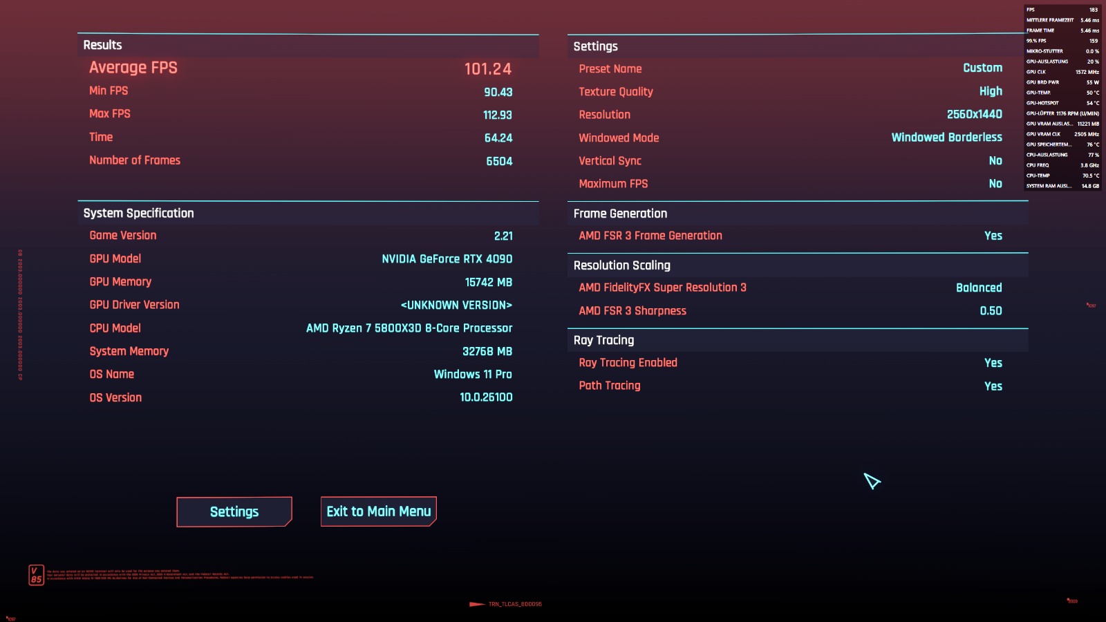Sobald ich im installierten Adrenalin Treiber (sowohl 25.3.1 als auch 25.3.2) irgendetwas an den Leistungsparametern, also Spannung, Speichertakt und Powertarget einstelle, wird die AMD Karte im CP2077 Benchmark nicht mehr richtig erkannt. Manchmal greifen spielintern anscheinend auch ganz andere Grafikeinstellungen, als die von mir eingestellten, was sich an den Frameraten und der Bildqualität bemerkbar macht (trifft auf das Bild im Anhang nicht zu). Offensichtlich schmiert der Treiber irgendwie ab, auch wenn ich keine Fehlermeldung oder ähnliches bekomme.