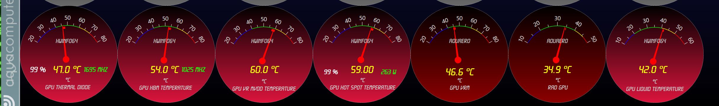 Die GPU Hotspot Temperatur meiner Vega Frontier liquid liegt trotz Undervolting auf 1,1 V bei 95 - 103 °C unter Volllast.
