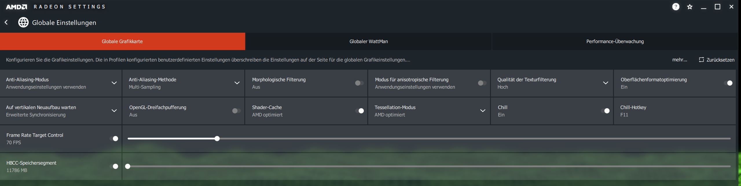 Die GPU und HBM Temperatur liegt bei knappen 60 °C.