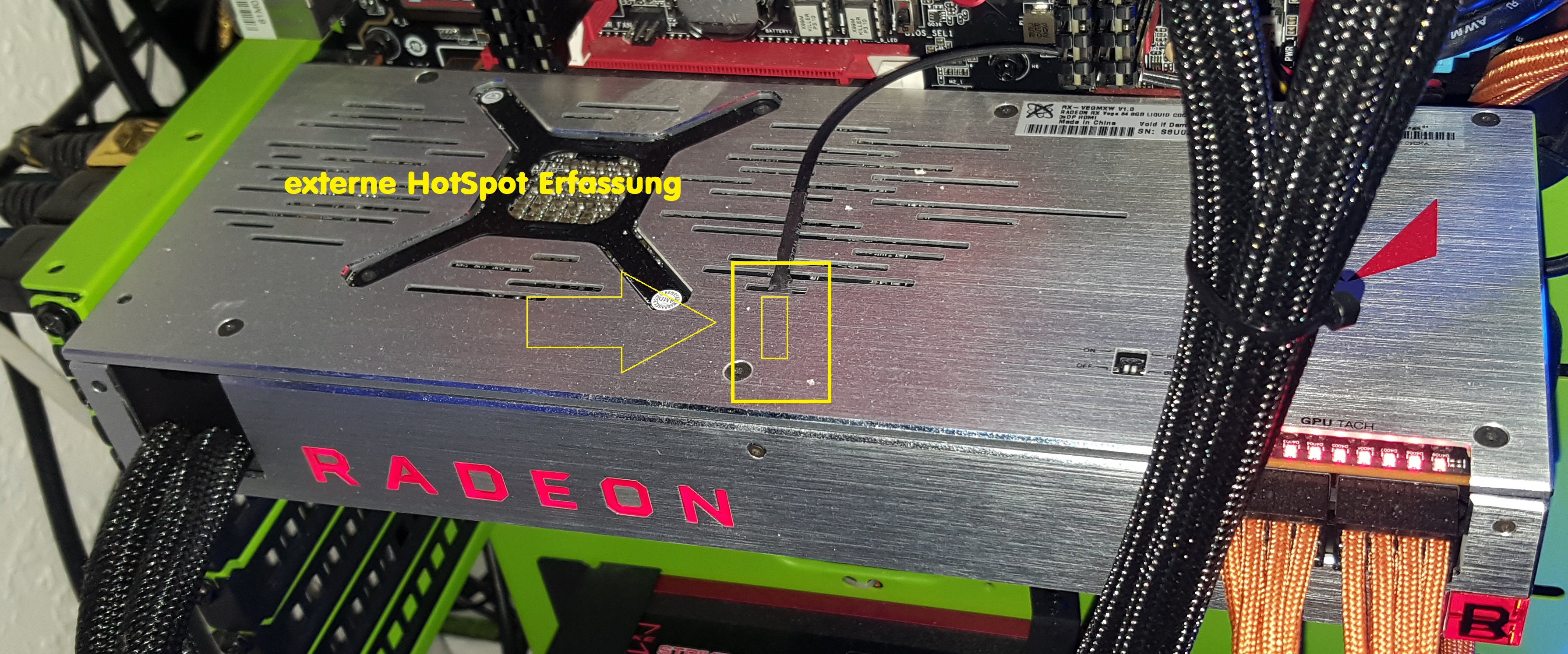 Der Hotspot soll sich auf den Ort der Rückseite des PCBs beziehen, wo sich auf der anderen Seite die GPU befindet: