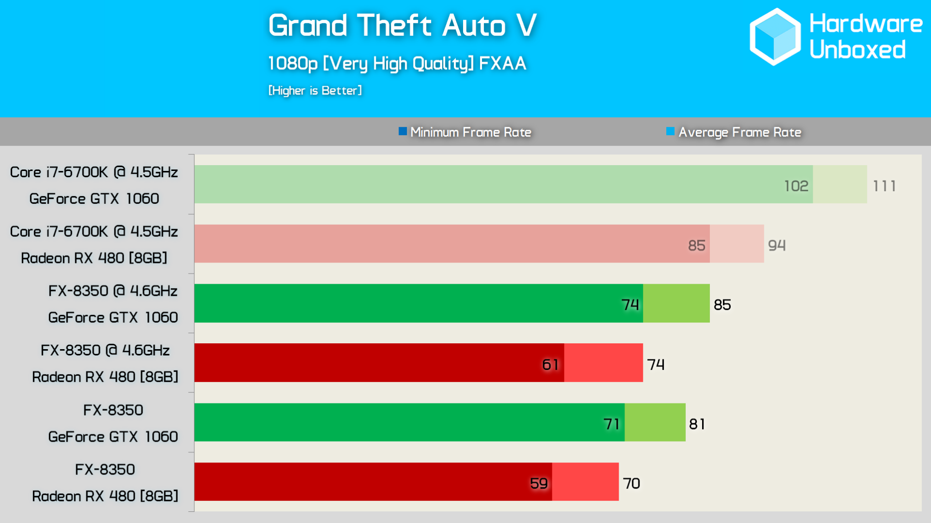 Bei Benchmarks im Internet erzielen die Personen mit dem FX8350 und der RX480 eine durchschnittliche FPS von 81 und minimal 46. Natürlich, der 8350 ist schneller als der 8320, welchen ich auf 3,5GHz habe, aber ich würde stark bezweifeln, dass 500MHz einen so extremem Unterschied machen.