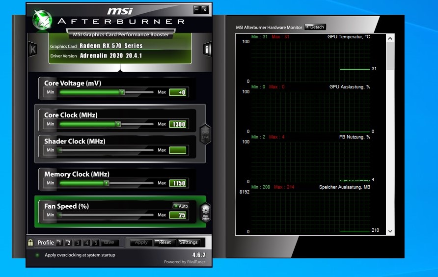 Also in Adrenalin lediglich die undervoltage eingestellt, im Afterburner die Lüfterkurve.