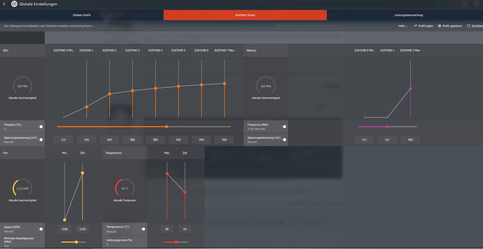 Undervolten die P States in Wattmann geht wunderbar, allerdings ja nur solange man nicht den Afterburner nutzt, sonst übernimmt Wattmann die mV nicht, nach nem Neustart alles weg.