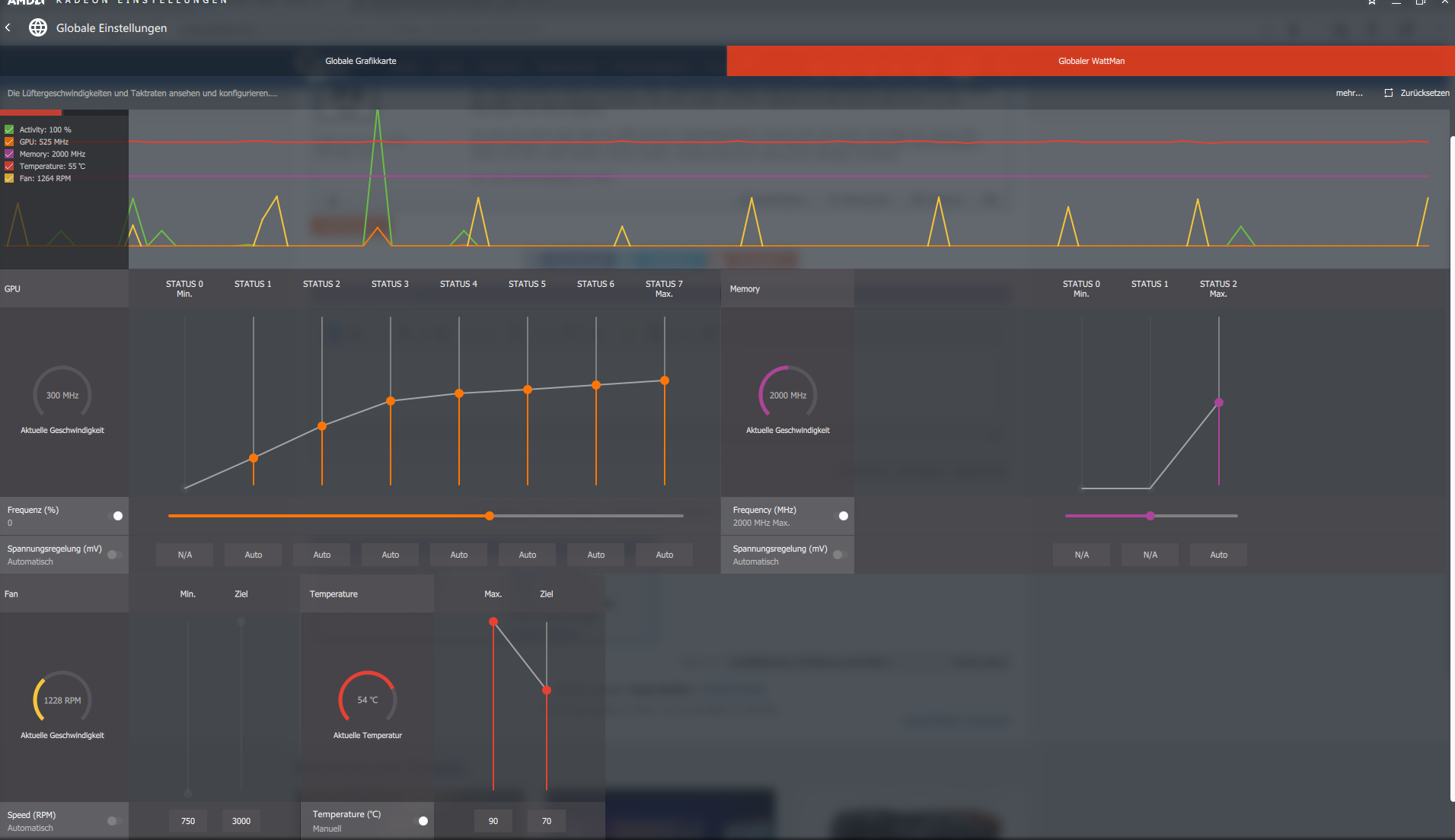 Da mein PC sonst sehr leise ist, fällt das bei "Desktoparbeiten" extrem auf und nervt. Ich habe mir schon mal diesen Wattman angeschaut, blicke da aber ehrlich nicht durch. Ich denke das Ganze ließe sich damit beheben, indem die GPU Lüfter einfach immer laufen, entsprechend am Anfang mit niedriger Drehzahl.