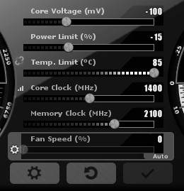 Wenn ich meine GPU downclocke auf 1300 MHz brauche ich 110 Watt bei 45-60 fps