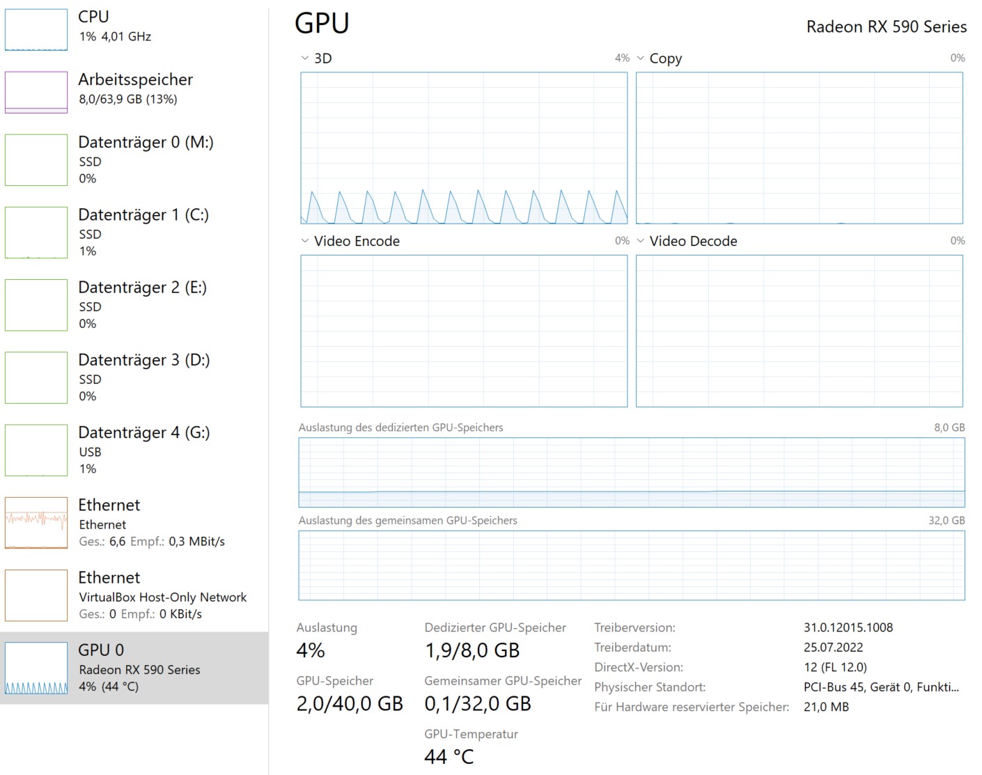 Das was mich wundert ist, dass die AMD Software 0% Lüfter Bewegung anzeigt obwohl der Lüfter voll aufdreht.