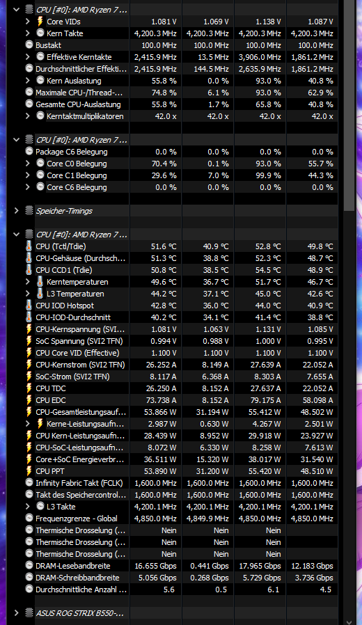 Ich nehm gerne HWInfo, aber die CPU wär bei dir grundsätzlich schnell genug solange sie ausreichend gekühlt wird. Hattest du schon das BIOS auf den neuesten Stand gebracht? Overclocking Funktionen aktiv? Würde vorschlagen erstmal ohne PBO und so Späße zu testen.