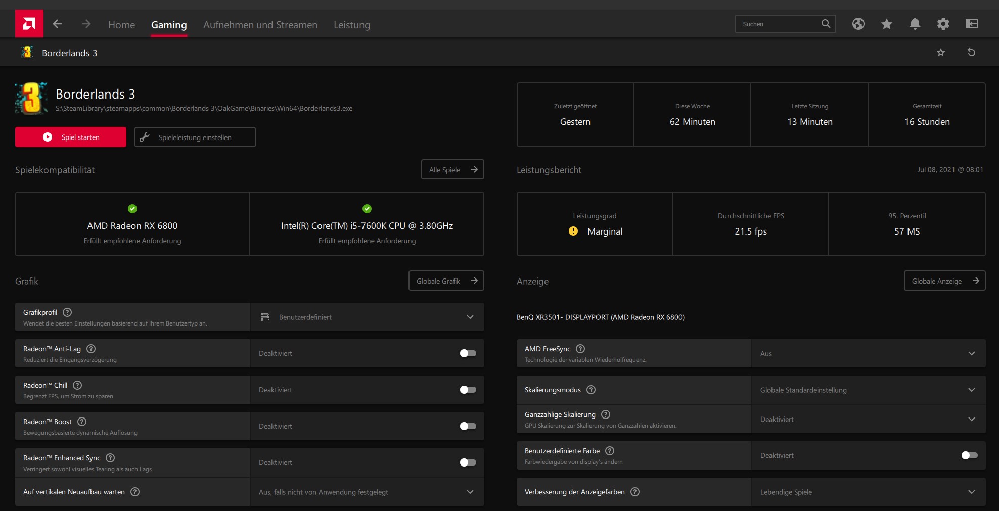 An sich bleibt ja alles gleich sowohl hardware als auch software nur mit dem unterschied das statt der gtx eine rx drinne ist. Aber im hintergrund sind noch rainmeter (10% cpu auslastung) und chrome (auch circa 10%) geöffnet aber wie schon beschrieben war das mit der gtx genausomuh0rsen schrieb:Wird die CPU auch wirklich von den Spielen ausgelastet oder ist es vll ein anderer Prozess der die CPU so fordert, weil es bleibt komisch das du mit der 6800xt weniger FPS hast als mit der 1070.