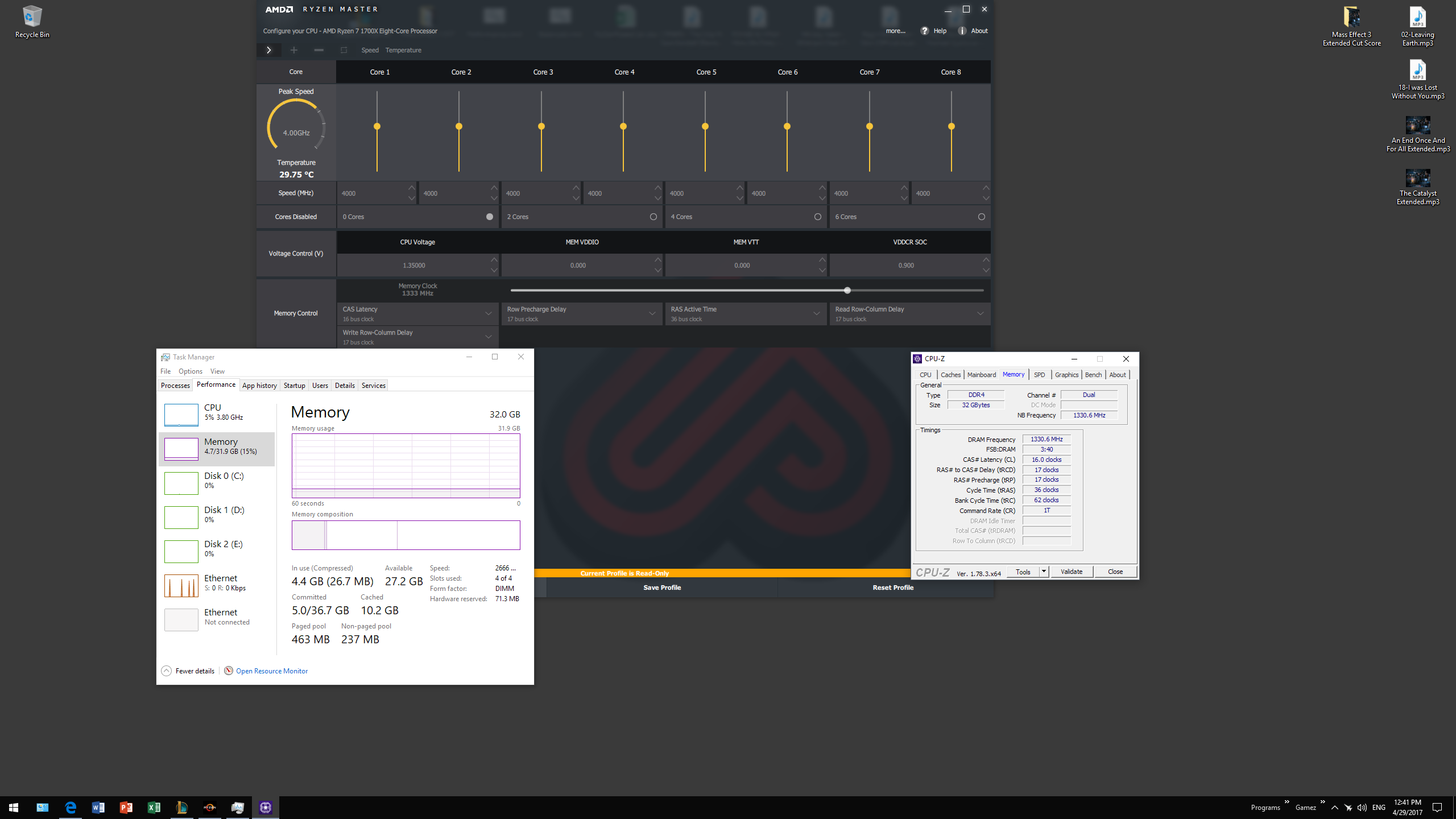 AMD Pendant zu XMP) auf 2133 (ist ein 2800er) und mit A-XMP auf 2666 eingestellt mit 1.2 V (laut command Center).