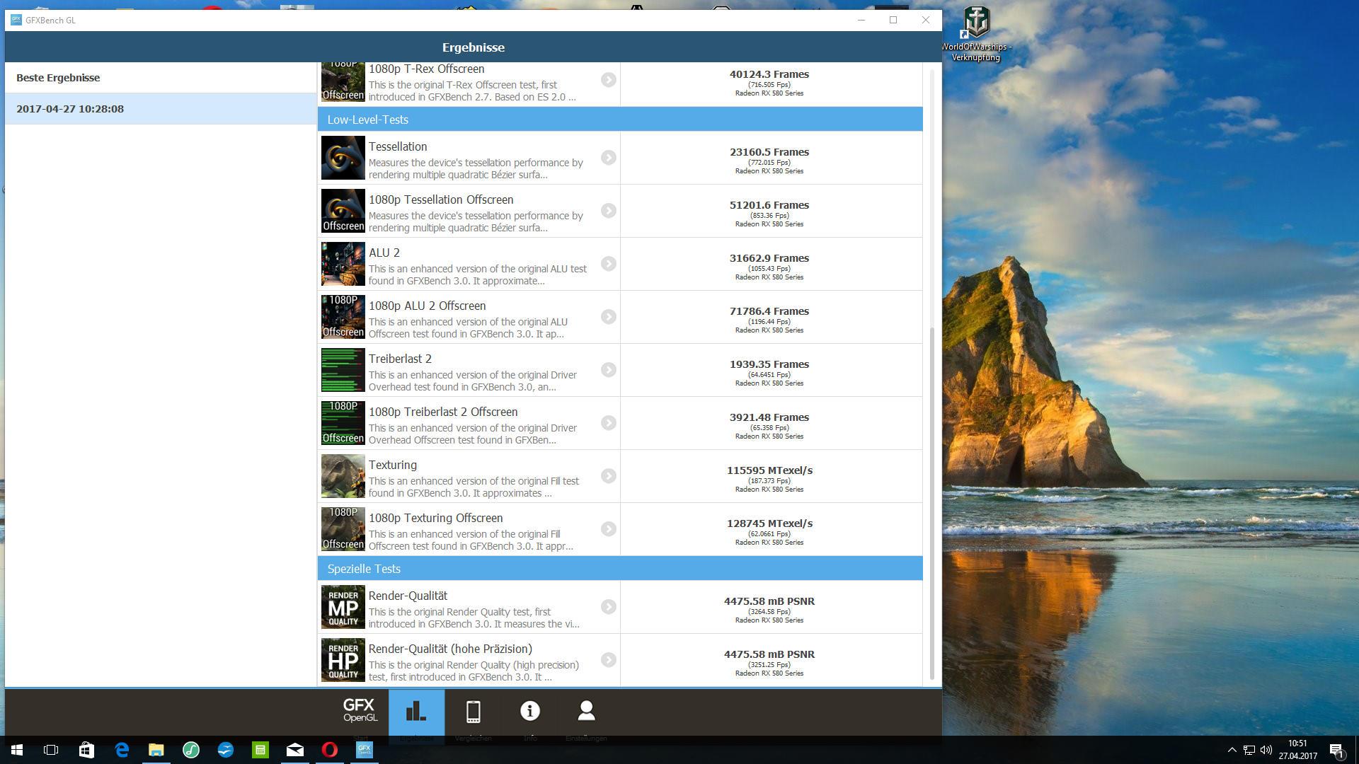 open GL Benchmark - ein Durchlauf dauert lang 20 min ? zumindest wenn man alles durchlaufen lässt , ca 280 mb