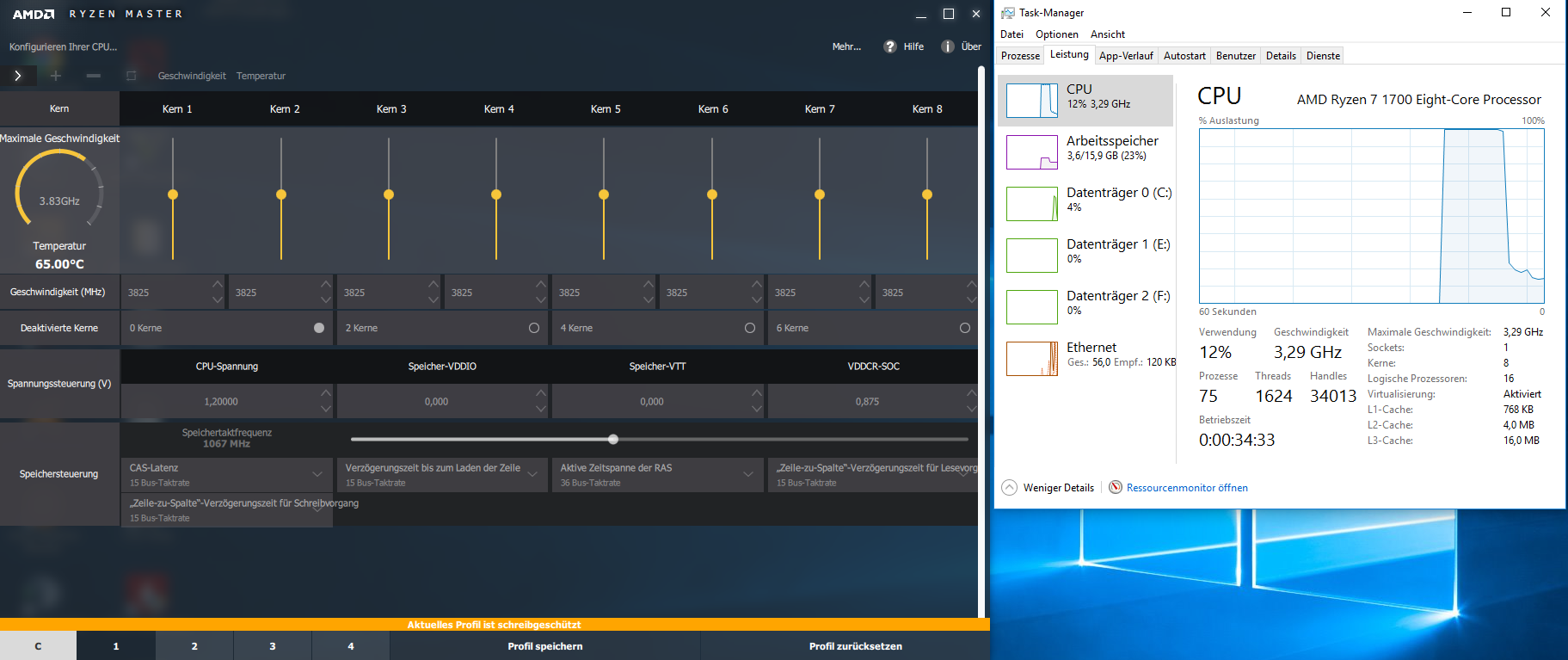 Ryzen 7 1700 ( laut taskmanager 3.29 Ghrz )